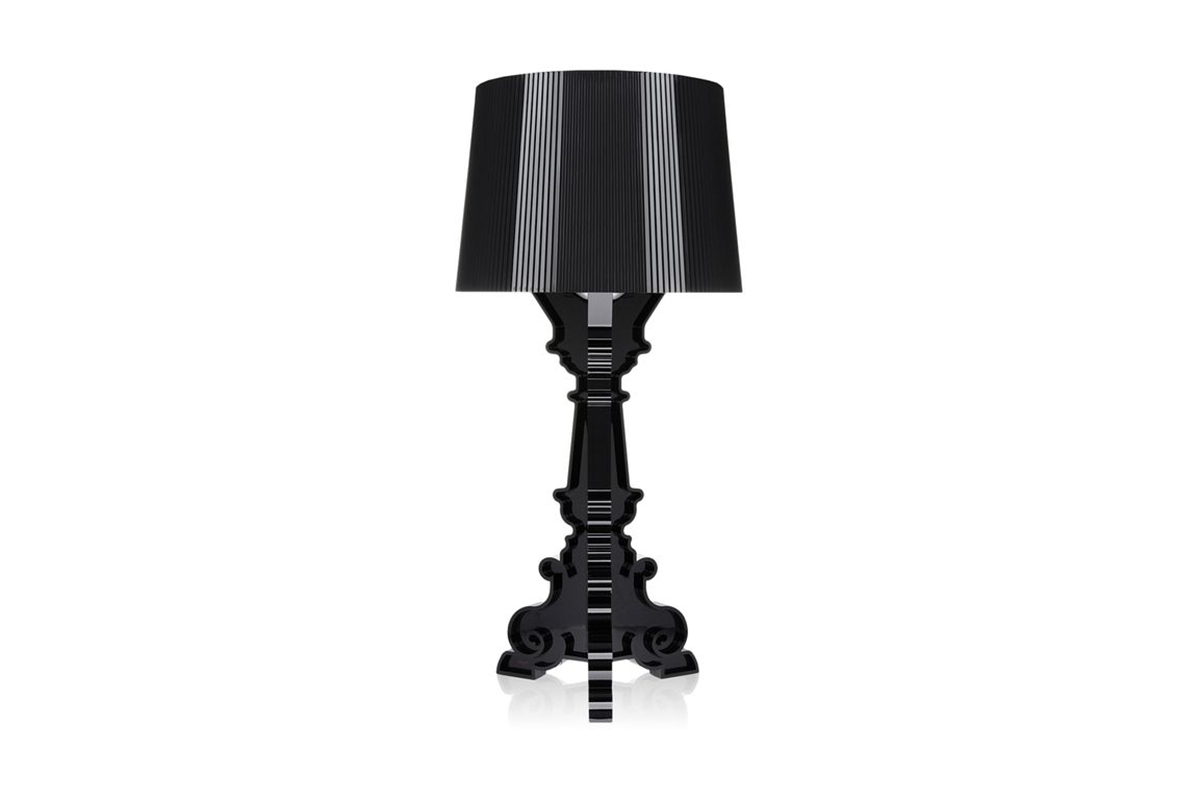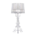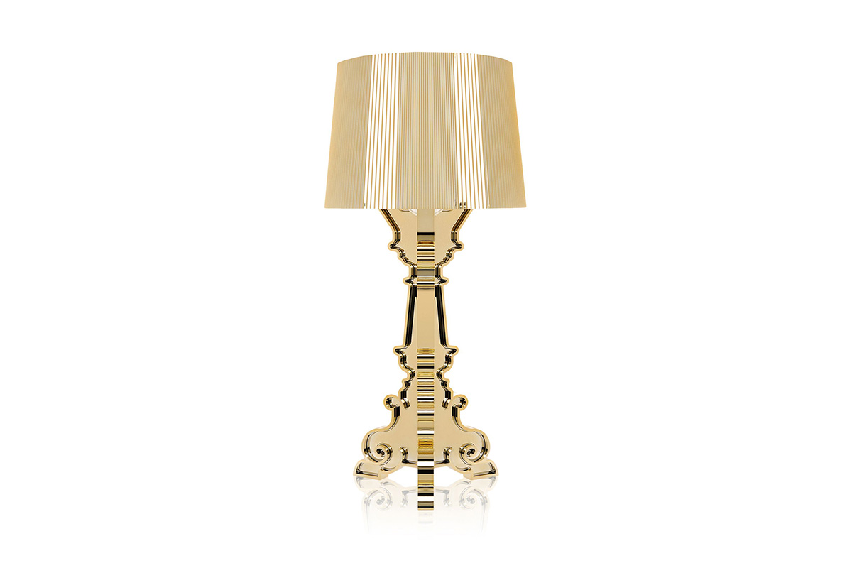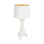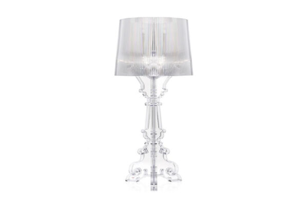 Ein echter Kartell-Bestseller.Eine Leuchte von unverwechselbarem Stil, ein echter Kartell-Bestseller: Bourgie verbindet auf wundervolle Weise klassischen Stil, Vielfalt und Tradition mit Innovation und Esprit. Der Sockel ist im Barockstil gestaltet und besteht aus drei dekorierten Ebenen, die zusammen eine Kreuzform bilden. Der Lampenschirm ist plissiert, sodass beim Einschalten wunderschöne Lichtreflexe entstehen. Dank eines besonderen Befestigungssystems des Schirms ist die Leuchte auf drei Höhen feststellbar, je nachdem, wie sie genutzt werden soll: 68 cm, 73 cm und 78 cm. Bourgie kann ganz nach individuellem Wunsch in eine wunderschöne dekorative Leuchte für den Tisch oder den Schreibtisch verwandelt werden: Sie kann aber zum Beispiel auch – dank der Flexibilität ihrer Leistungen und der starken kommunikativen Bedeutung – auf einem Beistelltisch im Wohnzimmer Platz finden, als Stimmungslicht auf dem Nachttisch im Schlafzimmer oder als Skulpturobjekt auf dem Boden dienen oder als Leselampe verwendet werden. Nach dem großen Erfolg der transparenten Ausführungen in den Farben Schwarz, Gold, Silber und Weiß/Gold ergänzt Kartell heute das Programm um drei neue, überraschende, vielfarbige Versionen, mit denen man mutig einen originellen und antikonformistischen Akzent setzen kann.