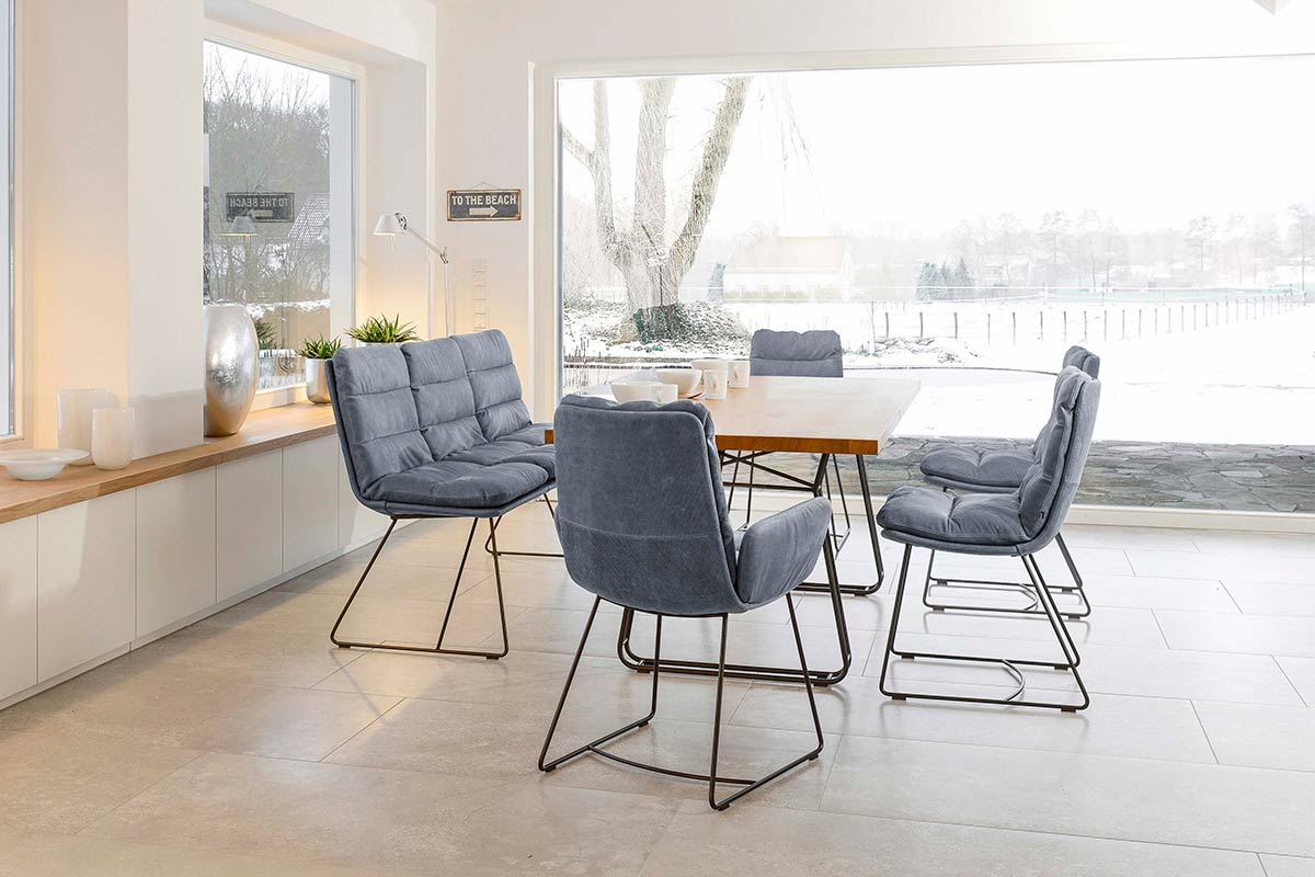 Eine sichere Bank. Und bequem noch dazu!KFF gestaltet, entwickelt und fertigt erfolgreich aussagekräftige Möbel mit eigenständigem Design „Made in Lemgo, Germany“ für den Wohn- und Ess- und Objektbereich. Das Modell Arva ist vielfältig in seinen Ausführungen. Die Arva Bank ruht auf einem Drahtkufengestell. Sitz- und Rücken erhalten Sie wahlweise in Leder- oder Stoffbezug.