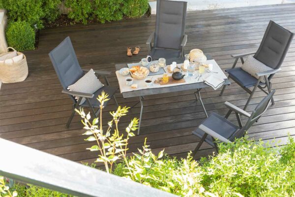 Die Aluminiumstruktur des Sessels Zen-it verleiht ihm ein geringes Gewicht und eine beispiellose Korrosionsbeständigkeit. Der Bezug aus Batyline® ist optimal für die Nutzung im Freien. Die Armlehnen in schlichtem Design sind verstellbar und ermöglichen 5 verschiedene Positionen vom geraden Sitzen bis zum gemütlichen Liegen.