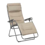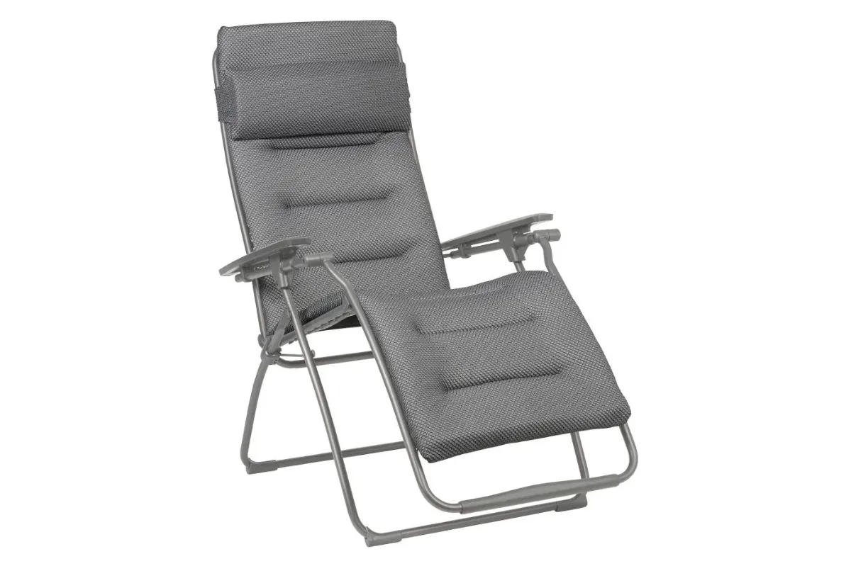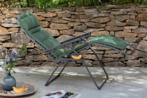 Gepolsterte Zero-Gravity-RelaxliegeMit der Relaxliege FUTURA in gepolsterter Ausführung können Sie den weichen Komfort eines Relaxsessels genießen, der sowohl für den Innen- als auch den Außenbereich geeignet ist. Dieses Modell bietet ultimative Entspannung, denn es wurde entwickelt, um DIE ideale Entspannungsposition in Form eines Klappsessels zu bieten. Das wichtigste Prinzip ist die Positionierung der Beine leicht über Herzhöhe, wodurch Ihre Erholung optimiert wird. Unverzichtbar für die Entspannung auf der Veranda, im Garten oder ganz einfach im Haus.