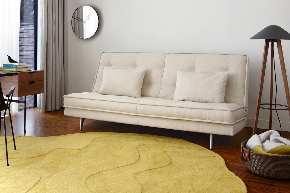Bequemes SchlafsofaDas komfortable Schlafsofa Nomade Express von ligne roset ist für den täglichen Einsatz geeignet. Es lässt sich unkompliziert und problemlos in ein bequemes Bett umwandeln. Die praktischen Keilkissen sind in Matratzenoptik und sind auch als Kopfkissen verwendbar. Liegefläche 140 x 200 cm, Matratzenstärke 16 cm. Matratze aus Bultex-Polyurethan-Schaumstoff, Unterseite mit Matratzendrell (100 % Baumwolle) bezogen. Dieses Schlafsofa erhalten Sie in zwei Ausführungen: mit Knopfabsteppung oder Fadenabsteppung.