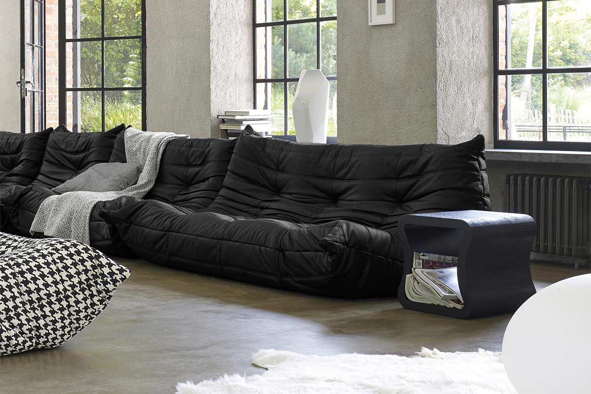 Der Klassiker von Ligne RosetDie niedrige Sitzhöhe und die muldenförmigen Sitzflächen und Rückenlehnen laden zur Entspannung ein. Seit den Siebzigerjahren ist dieser kuschelige Klassiker auf Erfolgskurs. Sein Designer Michel Ducaroy hat TOGO zur Sitzlandschaft der unbegrenzten Möglichkeiten gemacht.Die Struktur besteht aus zahlreichen Polyätherschaumstoffen in verschiedenen, aufeinander abgestimmten Dichten.
