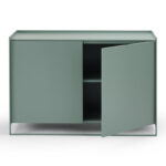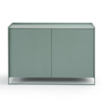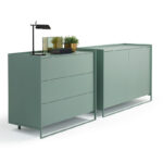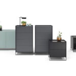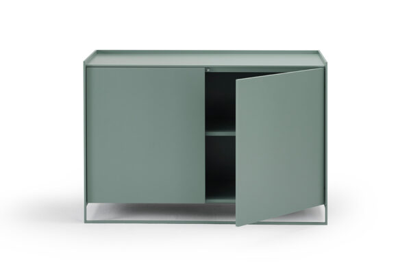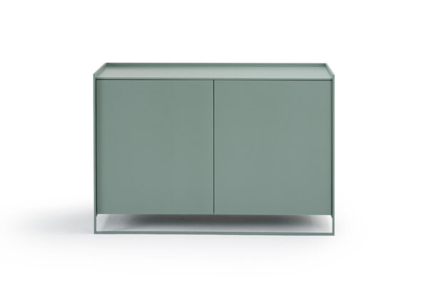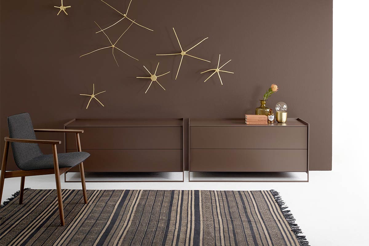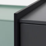 Die Eleganz feiner, aufeinander abgestimmter Details ist das formale Thema der neuen Kommodenserie LEAN BOX. Die Kommode ruht vorn auf einer filigranen Kufe von nur 5 x 15 mm, die sich im Korpus als umlaufender „Kragen“ seitlich und oben fortsetzt und das Erscheinungsbild als an der Wand lehnende Kommode prägt. So scheint die LEAN BOX zu schweben. Je nach Einsatzbereich lässt sich die Kommode mit Türen und Schubkästen ausstatten. Hier kommt dann die neueste Push-to-Open Technik zum Einsatz, die Schubkästen haben zudem noch einen integrierten Softeinzug. An der Wand stehend kommt die LEAN BOX Kommode mit einer Kufe vorne aus. Eine freistehende Variante mit zwei Kufen ist ebenfalls möglich.