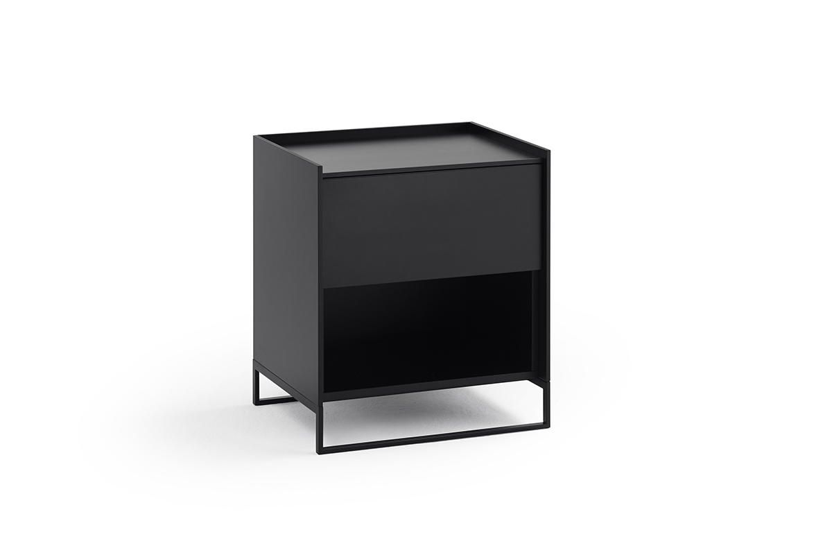 Die Eleganz feiner, aufeinander abgestimmter Details ist das formale Thema der neuen Kommodenserie LEAN BOX. Die Kommode ruht vorn auf einer filigranen Kufe von nur 5 x 15 mm, die sich im Korpus als umlaufender „Kragen“ seitlich und oben fortsetzt und das Erscheinungsbild als an der Wand lehnende Kommode prägt. So scheint die LEAN BOX zu schweben. Je nach Einsatzbereich lässt sich die Kommode mit Türen und Schubkästen ausstatten. Hier kommt dann die neueste Push-to-Open Technik zum Einsatz, die Schubkästen haben zudem noch einen integrierten Softeinzug. An der Wand stehend kommt die LEAN BOX Kommode mit einer Kufe vorne aus. Eine freistehende Variante mit zwei Kufen ist ebenfalls möglich.