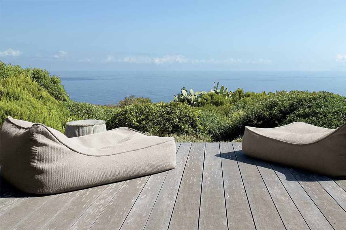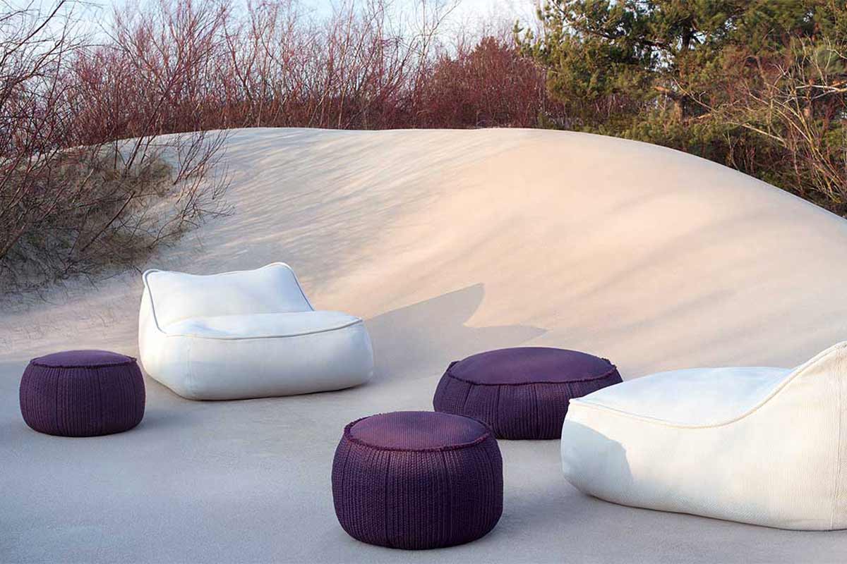 Bequemer Sessel für den Outdoor-BereichFloat von Paola Lenti ist eine Kollektion aus Sessel, Chaiselongue und Hocker. Die Polsterung besteht aus einem mit Polystyrolkugeln gefüllten Polyesterbezug. Der Bezug ist aus den exklusiven Stoffen von Paola Lenti Rope oder Aquatech erhältlich. Diese Materialienkombination gewährleistet die völlige Wasserdurchlässigkeit und ist daher für den Außenbereich optimal geeignet.