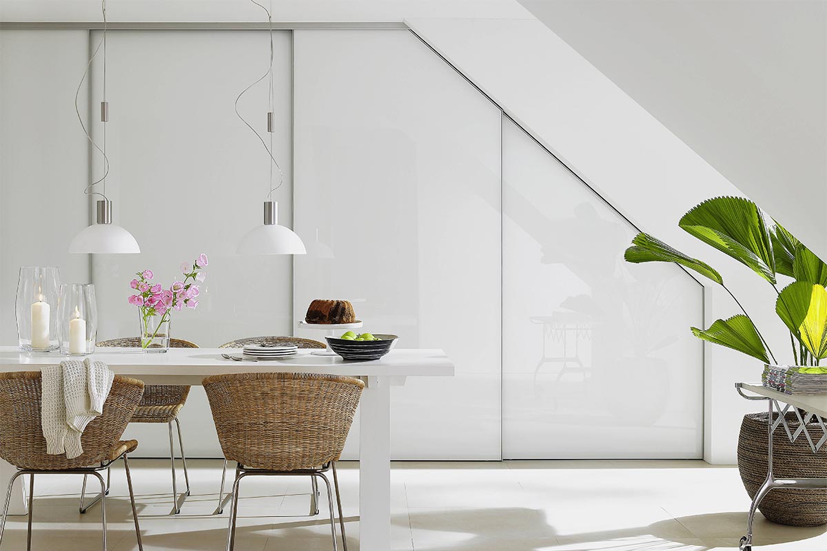 Schräg und chic.Schiebetüren Lösungen für besondere Grundriss-Begebenheiten wie zum Beispiel die Dachschräge bietet Raumplus. Die Schiebetüren Elemente können komplett an die vorgegebene Dach- oder Raumschräge angepasst werden. So wird wertvoller Raum perfekt nutzbar. Hinter den Schiebetüren verschwinden Kleidung, Schuhe, Reiseutensilien, Bücher und vieles mehr in sauber und strukturiert aufgeteilten Fächer, Schubladen und Ablagen! Wählen Sie aus verschiedenen Oberflächen individuell aus – und schaffen Sie mit Raumplus eine ansehnliche Aufbewahrungslösung in Ihrem Zuhause.
