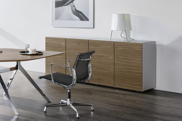 Für Repräsentation und Konzentration.Für Repräsentation und Konzentration. Für traditionelle Bürokonzepte oder für offene, kommunikative Raum-strukturen. Das modulare Arbeitsplatzsystem ist geschaffen für individuelle Einzelbüros, für Teamarbeitsplätze, für Meetingzonen und Projektarbeit. Star ist ein umfassendes Office-Programm, mit dem auch komplexe Planungen mit durchgängigen Gestaltungskonzepten und Materialien realisiert werden können. Tische, Container und Highboards sind die Grundelemente. Funktional und hochwertig, in eigenständiger, klarer Optik. Für die Tischplatten in unterschiedlichen Größen und Formen stehen ausgewählte edle Furniere oder Strukturlack für feinstrukturierte, mattschimmernde Oberflächen zur Auswahl. Container und Highboard stehen in Lack alusilber, Lack schwarz metallic, Lack braun metallic oder Lack Struktur weiß zur Auswahl.