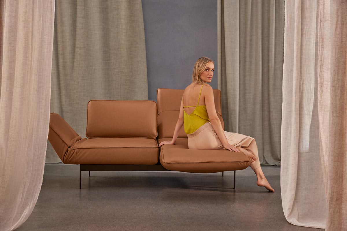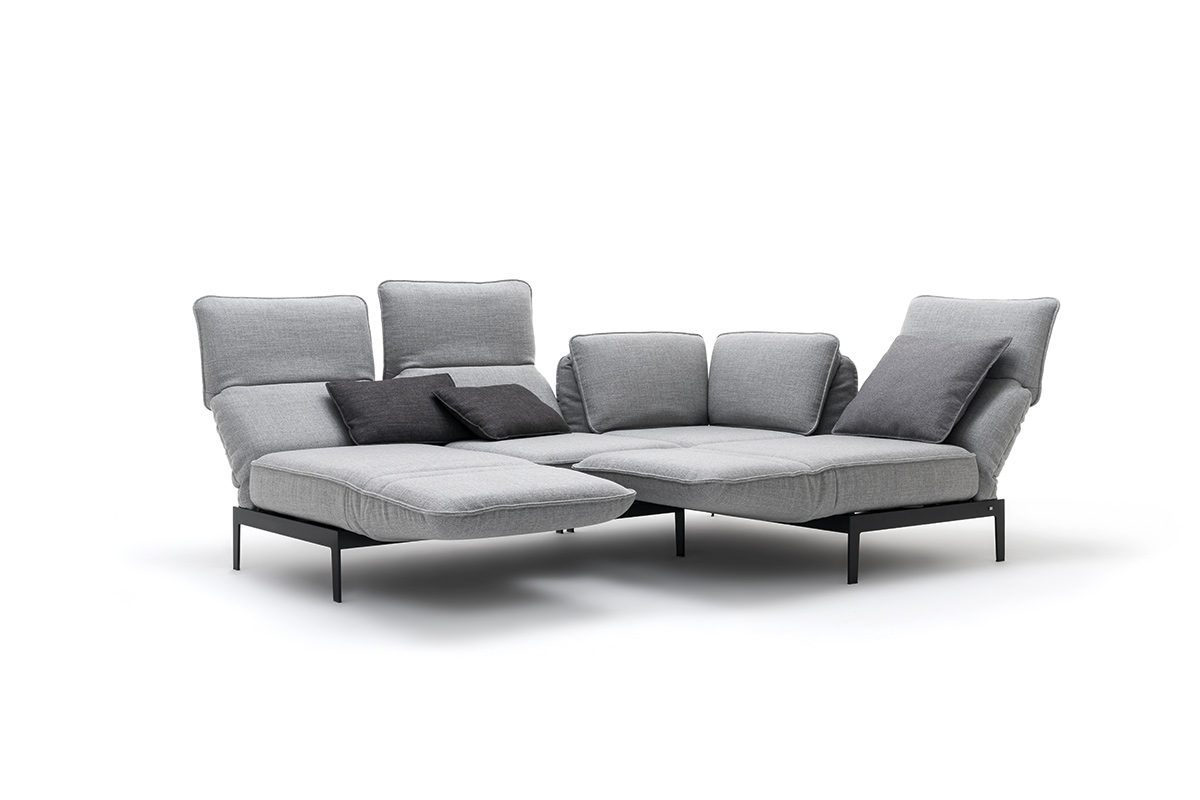 Wunderbar wandelbar.In Zeiten, in denen der Wohnraum selbst immer mehr zum Luxus wird, sind kreative Lösungen gefragt, die aus weniger ganz einfach mehr machen. Deshalb ist Rolf Benz MERA als wahres Raumwunder konzipiert.Die verschiedenen Kombinationen von flexiblen Lehnen, Sitzen und Seitenteilen ermöglichen dabei unterschiedlichste Sofakompositionen mit individuellen Liege- und Sitzpositionen. In der Einstellung zum Beine- Hochlegen ist das Fußteil genau auf Höhe des Sitzes. Das fühlt sich nicht nur gut an, es sieht auch noch gut aus, denn so lassen sich geschlossene Inseln bilden. Ein stufenlos verstellbarer Rücken und nach oben klappbare Kissen zaubern eine extrahohe Lehne, die besonders komfortabel ist. Auch das Kopfteil kann in die persönliche Lieblingsposition gebracht werden. Verstellbare Seitenteile zum Querliegen und -sitzen vervollständigen die vielen versteckten Komfortfunktionen, die aus jedem Wohnraum Ihren ganz persönlichen Wohntraum machen.