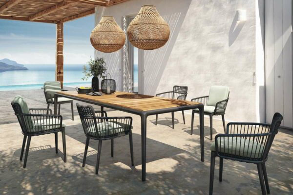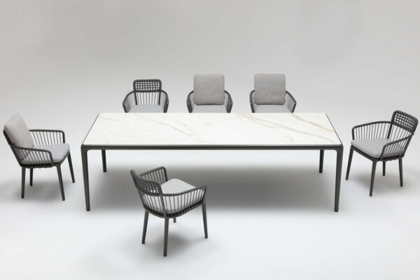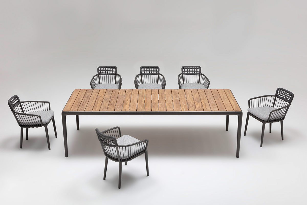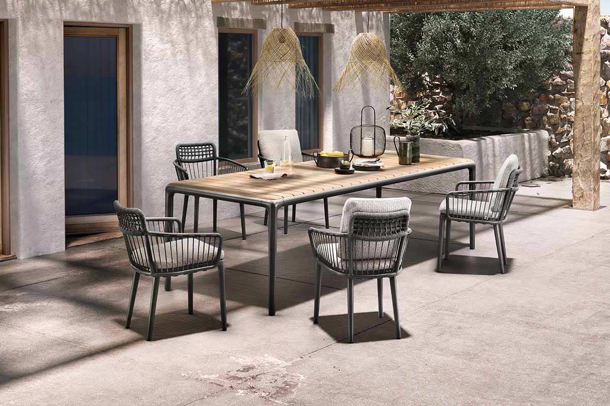Draussen zuhause.Unter freiem Himmel lässt es sich nicht nur besser durchatmen, sondern auch dinieren. Der leichtfüßige Rolf Benz YOKO Tisch bietet in drei verschiedenen Maßen Platz für Geselligkeit und ist, egal in welcher Materialkombination, eine Augenweide im Grünen. So können Sie bei der Einlegeplatte zwischen Teak und drei Keramikoberflächen wählen, die in Kombination mit dem Alurahmen weiche Kontraste setzen.