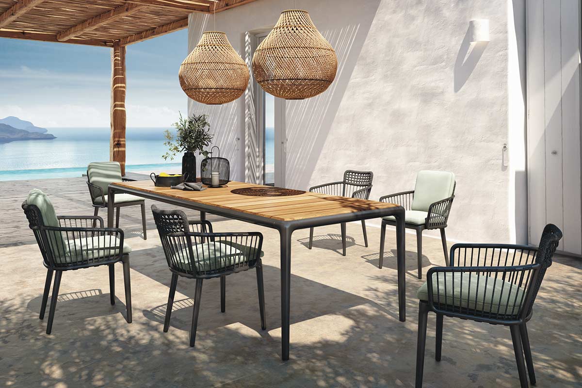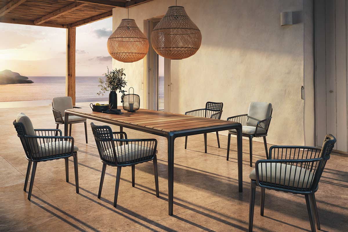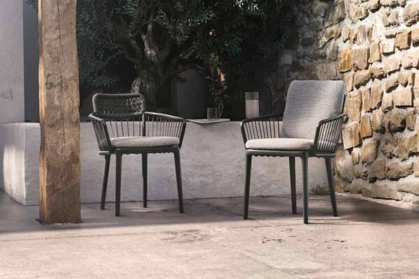 Draussen zuhause.Unter freiem Himmel lässt es sich nicht nur besser durchatmen, sondern auch dinieren. Der Rolf Benz YOKO Stuhl kann optional mit losen Sitz- und Rückenkissen gepolstert werden, bietet dank des Flechtwerks aus Seilen aber auch schon für sich allein höchsten ergonomischen Sitzkomfort.