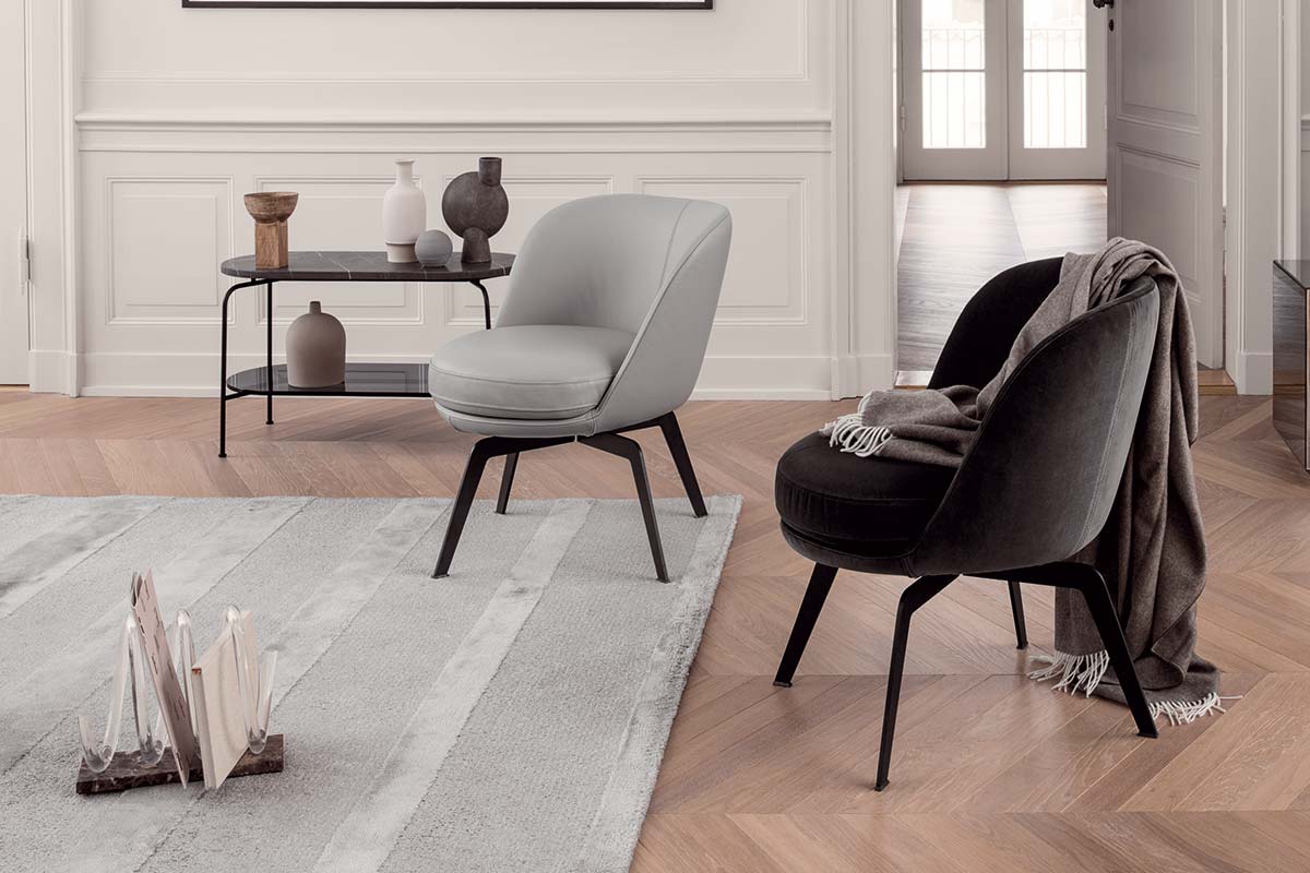 Clubsessel deluxe.Der Clubsessel Rolf Benz 562 eckt nirgends an. Das liegt nicht nur an dem fein gerundeten Sitz, sondern auch an der organischen Anmutung, die ihn perfekt in jede Wohnsituation einfügt. Egal ob große Wohnräume oder kleine Leseecken – mit seiner zierlichen Erscheinung macht er überalleine gute Figur. Für individuelle Wünsche steht eine breite Bezugspalette zur Auswahl und auch beim Fuß haben Sie verschiedene Möglichkeiten: entweder die lackierte Version aus Metall in Verkehrsschwarz oder Umbragrau. Oder die Ausführung mit Holzfuß in Eiche oder Nussbaum. Beide sind auch optional mit Drehfunktion verfügbar und egal, wofür Sie sich entschieden: ein kleiner Hauch von Sehnsucht nach den alten Zeiten schwingt bei beiden mit.