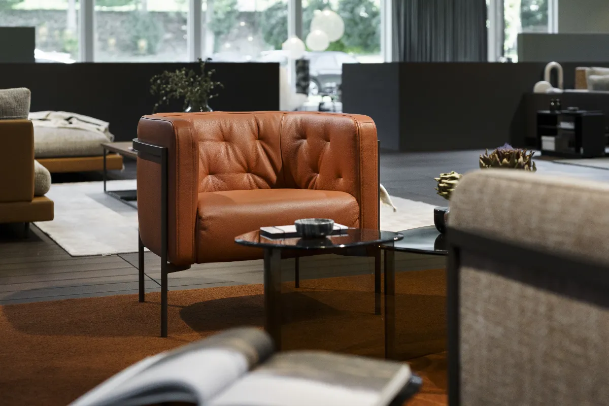 Weicher Charakter mit festen Werten.Die schönsten Dinge im Leben sind simpel. Noch besser sind sie allerdings, wenn ihnen ungeahnte Komplexität innewohnt, die erst bei genauerem Hinsehen offenkundig wird. Genau dafür steht der Clubsessel Rolf Benz PHIL. Auf den ersten Blick besticht dieser durch geradlinige Eleganz: Die weiche Polsterung wird durch den umlaufenden Stahlrahmen kontrastiert. Doch bei näherer Betrachtung eröffnet sich eine detailverliebte Darbietung meisterhafter Handwerkskunst. Die filigrane Nahtführung entlang der Lehnen verleiht dem Design Tiefe, während das abgesteppte Innere der Seiten- und Rückenlehne an ein modernes Chesterfield–Intermezzo erinnert.Ob in Leder oder Stoff, mit Stahlrahmen oder als Vierfuß in jeweils zwei Farben – privat oder in der Öffentlichkeit, im Ensemble oder als Solist: Rolf Benz PHIL passt sich jeder Umgebung und jedem Anlass perfekt an.