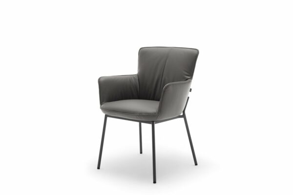 Edle Schale, weicher Kern.Gemeinsam am Tisch sitzen – dieser Moment ist in der heutigen Zeit kostbarer denn je. Die passende Grundlage für diese Augenblicke ist der Stuhl Rolf Benz 655: außen klar und innen soft. Mit seinen feinen Linien zitiert er den Stil der 50er-Jahre und verbindet ihn mit modernstem Komfort. Hier kommt echte Handwerkskunst zum Einsatz. Die Cacharel-Falte im Stuhlrücken erfordert höchste Präzision und wird in einem Polstermöbel zum absoluten Luxus. Sie ist zugleich eine Einladung an Ihre Kreativität. Denn der Außenbezug findet sich auf Wunsch im Inneren der Falte wieder, während der Innenbezug selbst in einer anderen Farbe gewählt werden kann.