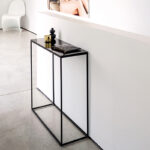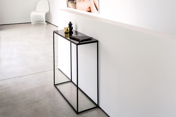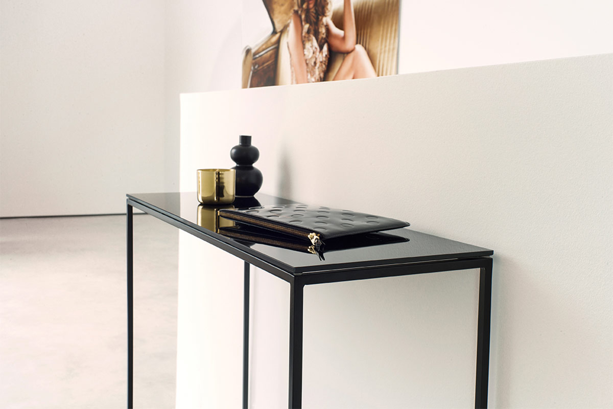 Minimalismus, Design und Funktion.Die Modelle der Linie RACK sind aus quadratischem Metallrohr in filigraner Optik. Zu der Linie gehören ein Konsoltisch sowie ein Beistelltisch in runder und einer in eckiger Ausführung. Ihr filigraner Look macht sie mit jedem Interior-Stil kompatibel, sie sind die perfekte Tischlösung in Wohnbereich, Schlafzimmer, Homeoffice und überall da, wo eine optisch zurückhaltende Ablagemöglichkeit gewünscht wird. Den Konsoltisch gibt es in 3 Ausführungen, in Rauchchrom mit passender Ablagefläche in Rauchglas, außerdem mit weißer oder schwarzer Pulverbeschichtung. Bei den pulverbeschichteten Varianten ist die Ablage aus Klarglas und im jeweiligen Farbton rückseitig lackiert. Die Beistelltische sind weiß oder schwarz pulverbeschichtet – und können bei Bedarf auch einfach mal umgedreht zum Schirmständer umfunktioniert werden. Pur und praktisch.