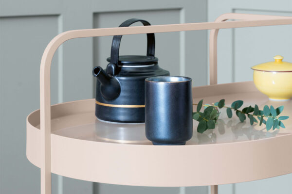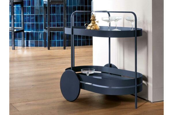Minimalismus mit Funktion.Der Servierwagen GRACE überzeugt mit puren Linien und funktionaler Klasse. Seine minimalistische Form ist das perfekte Beispiel für eine Neuinterpretation des Servierwagens. Ein Möbel, das auch als mobile Bar zum Einsatz kommen kann oder als Beistelltisch und Ablage im Homeoffice den Arbeitstag schöner macht. Das Design, nach einer Architektur-Inspiration aus den 1950er-Jahren, zeigt sich mit jedem Einrichtungsstil kompatibel, seine klare Eleganz macht diese Kreation zu einem besonderen Eyecatcher. Das Gestell ist aus pulverbeschichtetem Metall, wahlweise in Schwarz, Grau-Weiß, Nachtblau oder Rosenholz. Die obere Ablage ist aus Glas, sie ist jeweils farblich passend rückseitig lackiert. Ein starkes Designstatement, absolut modern und vollkommen zeitlos.