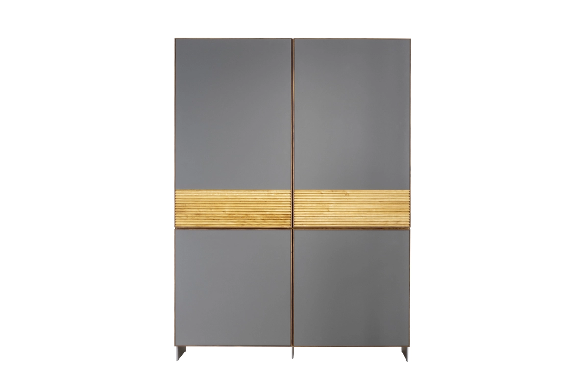 Eleganz trifft auf FunktionalitätDer Geschirrschrank Tratum von Scholtissek besticht durch seine besondere Frontgestaltung. Ein filigraner Rahmen umfasst eine Massivholzfront, die durch ihre Lamellenstruktur dem Möbel eine leichte, horizontal betonte Optik verleiht. Diese einzigartige Gestaltung macht Tratum zu einem echten Blickfang in jedem Raum. Ein besonderes Highlight ist das optionale, seitlich herausziehbare Barfach für Flaschen, das sich hinter einer vorgezogenen, mit Spiegel belegten Rückwand versteckt. Dies verleiht dem Schrank eine zusätzliche funktionale und ästhetische Dimension. Mit den Maßen B 150 cm, H 207 cm und T 44 cm fügt sich Tratum harmonisch in verschiedene Raumkonzepte ein und bietet gleichzeitig großzügigen Stauraum. Der Schrank ist in verschiedenen edlen Holzarten erhältlich, darunter knorrige Eiche, Astnuss/Birke, Wildkirsche/Birke, Amerikanische Kirsche/Birke sowie Amerikanischer und Europäischer Nussbaum/Birke.