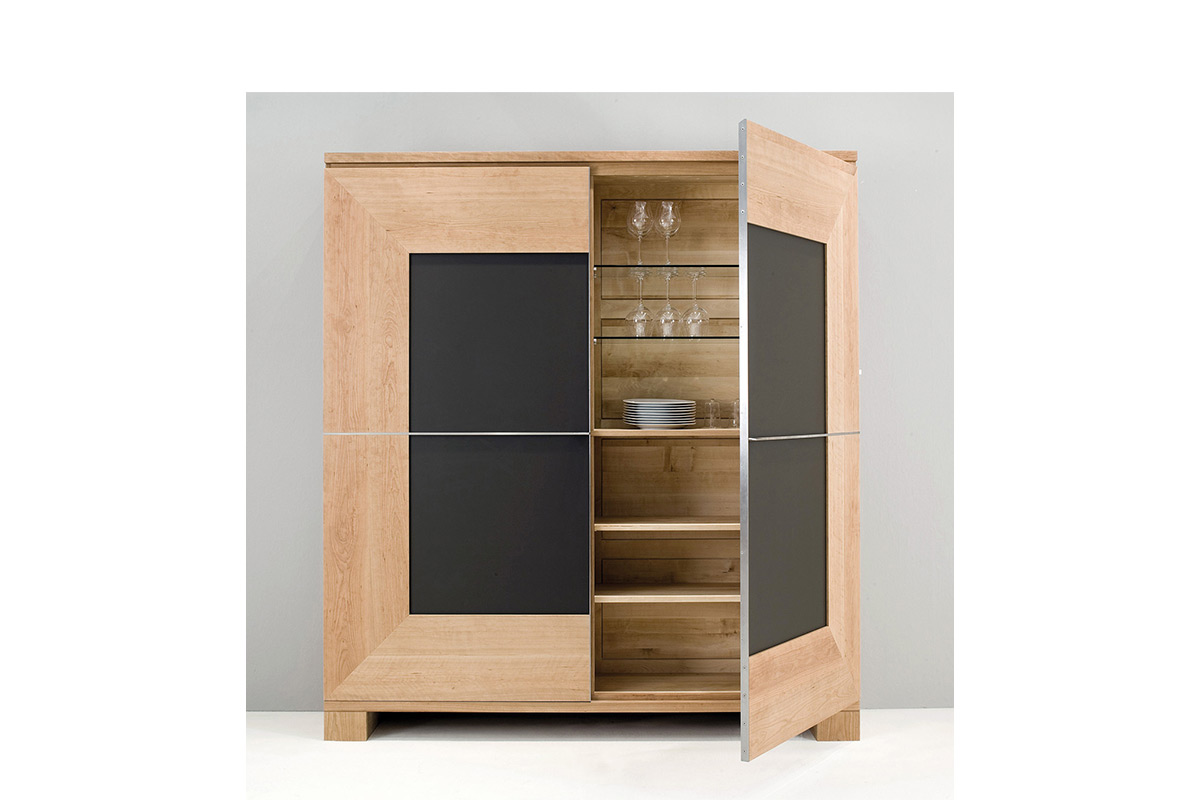 Eine LegendeK4 Glasquadrate + Edelstahlkreuz + Massivholzrahmen auf 45° – das ist das Design der Korpusmöbel-Collection Varus – mit Augenmaß auf den Punkt gebracht – eine Formgebung, Proportionen und Verhältnisse, an denen nichts mehr zu verbessern ist. Kühle Glasquadrate stehen im Kontrast zu Massivholzrahmen; Farben und Formen sind auf ein klares Bild reduziert. Scholtissek hat ein stimmiges Möbel gestaltet, das sich wie ein Bild an der Wand in den Raum einpasst.