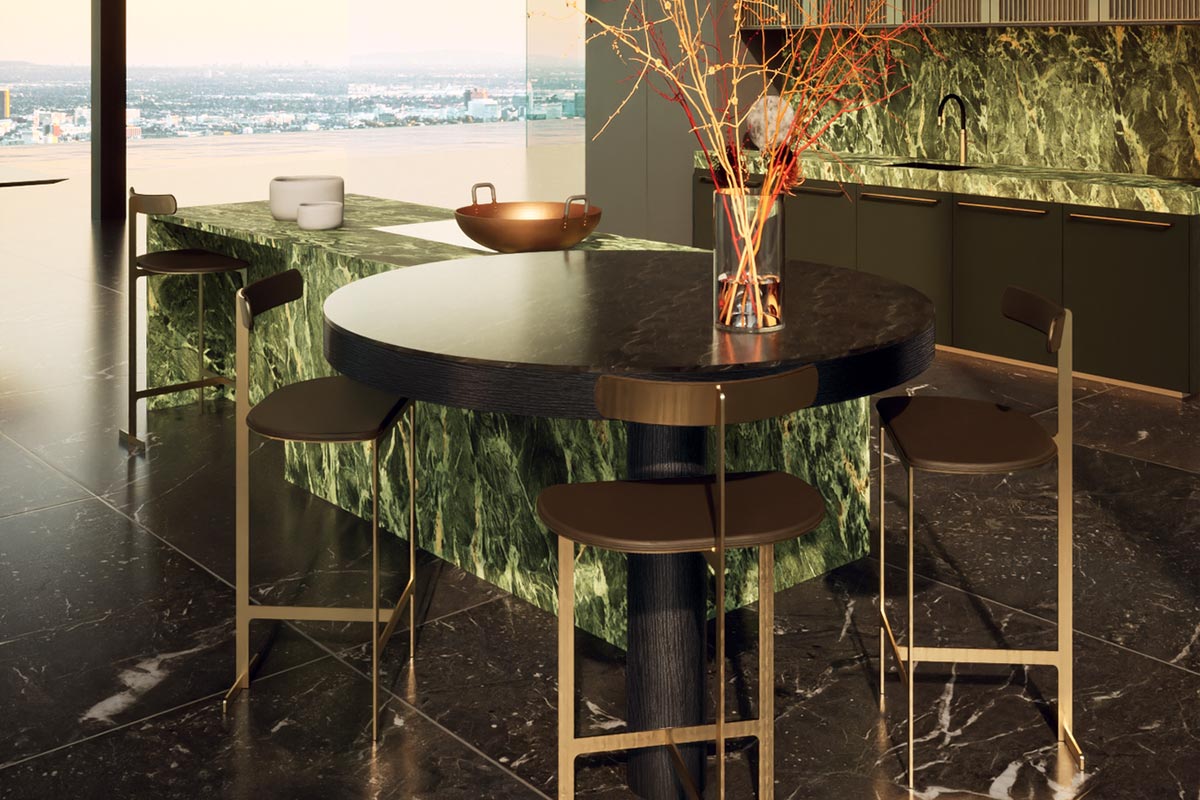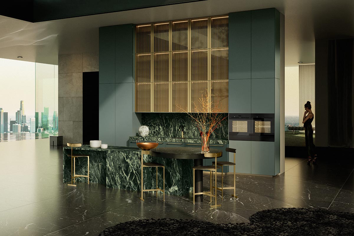 Opulenz, neu interpretiert.Das ausdrucksstarke Design der SieMatic Mondial spricht eine minimalistische, moderne und geometrische Formsprache ohne traditionelle Ornamentik und Stilistik. Mit kühnen Farben und Formen, gepaart mit expressiven, erlesenen Materialien und Materialstärken, überwindet sie die scheinbaren Grenzen des Küchendesigns. Und öffnet eine emotionale Welt aus Opulenz, Simplizität und Sinnlichkeit. Das faszinierende Zusammenspiel von Material, Form und Farbe verleiht der Küche eine außergewöhnliche Präsenz und lässt sie gleichzeitig mit der umgebenden Architektur verschmelzen.