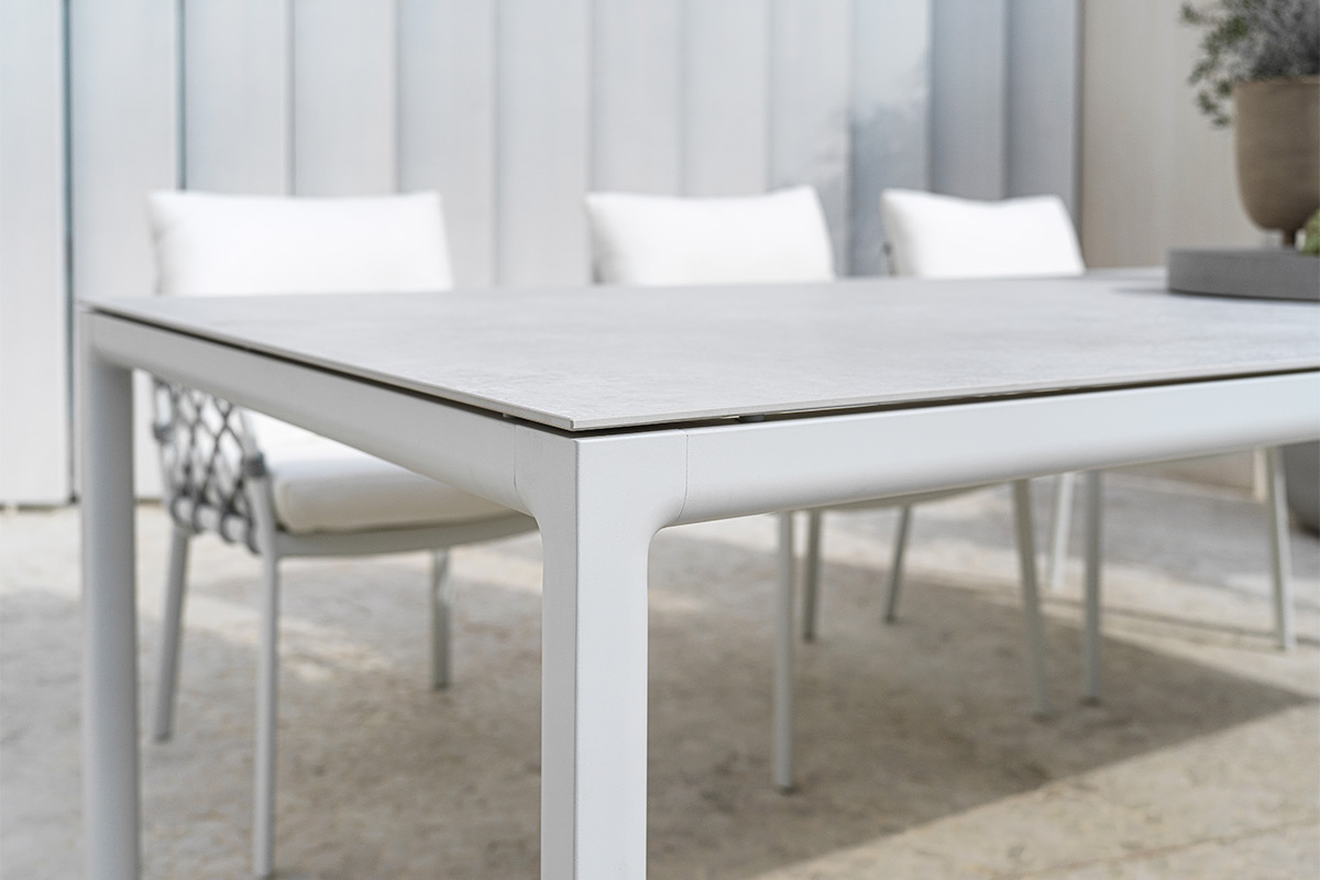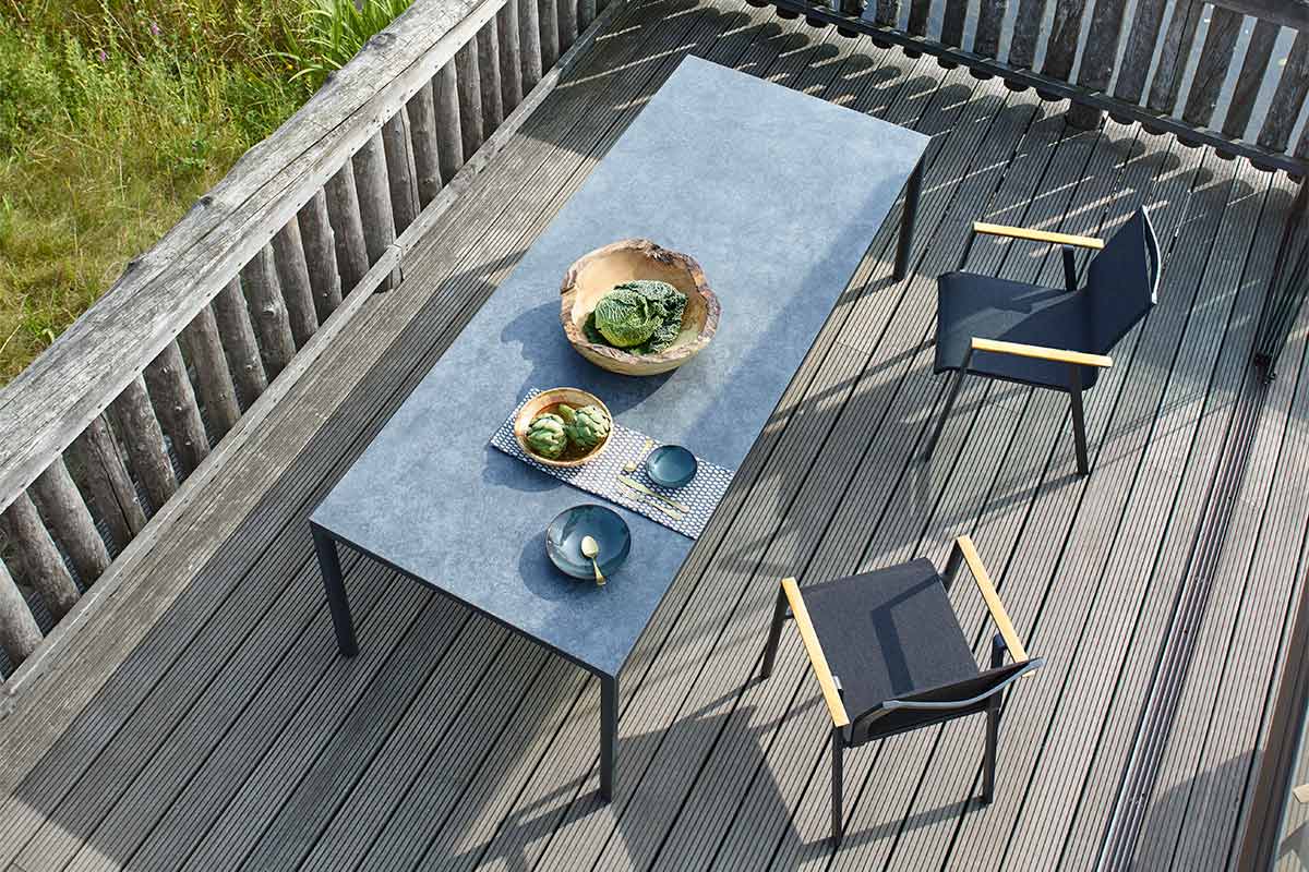 Preisbeispiel: Tisch 160 x 100 cm, Gestell Aluminium, Platte HPL standard € 1.299,- / Platte Keramik € 1.499, Platte Teak € 1.999,- inkl. kostenloser Lieferung im Umkreis von 50 km