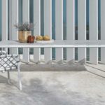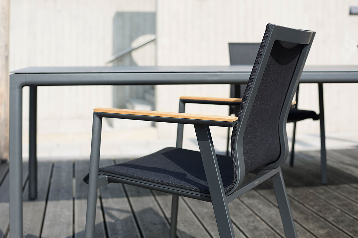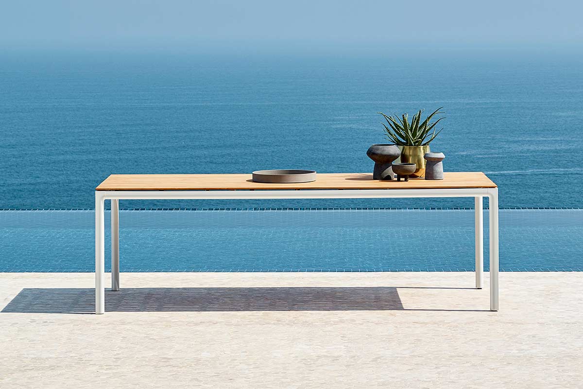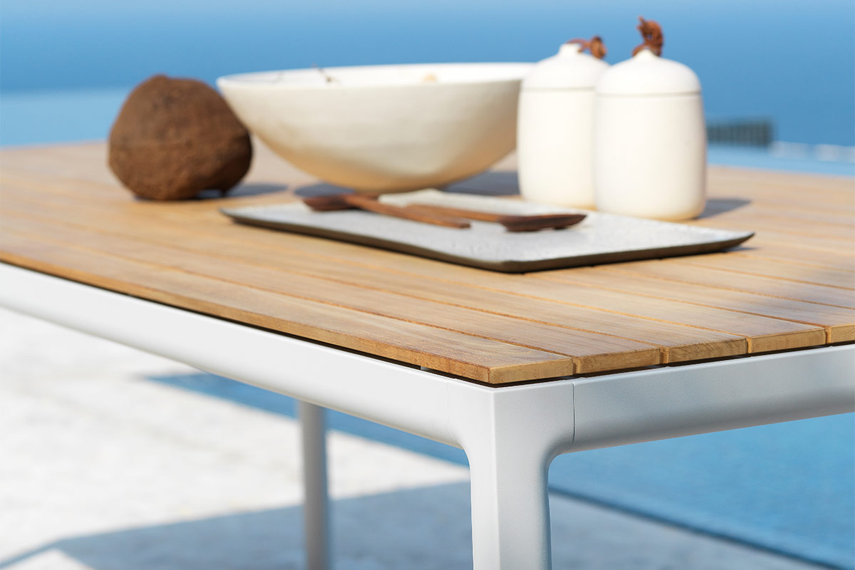 Material und Farbe: Gestell Aluminium weiß oder anthrazit, Platte Teak, Keramik oder HPL