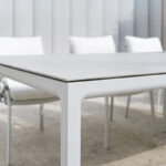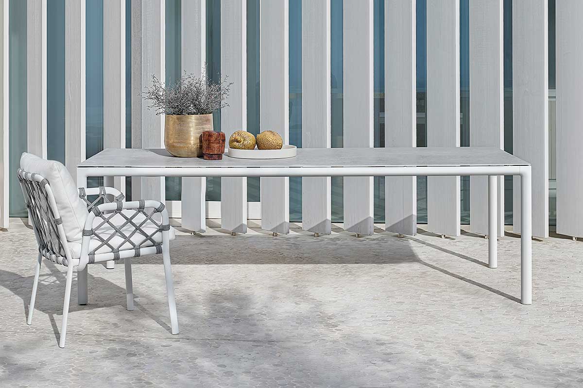 Exklusiver Gartentisch in verschiedenen GrößenDer SOFT Dining Tisch wurde im Jahr 2018 von Klaus Nolting entworfen. Wie aus einem Stück gegossen präsentiert sich der SOFT Tisch in schmalem, raffinertem Rahmenprofil mit kantigen Außenseiten, die nahtlos in weich gerundete Innenseiten und Tischbeinverbindungen übergehen. Die Tischgestelle aus Aluminium tragen wahlweise Keramik- oder HPL-Tischplatten und sind in unterschiedlichen Größen erhältlich.