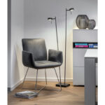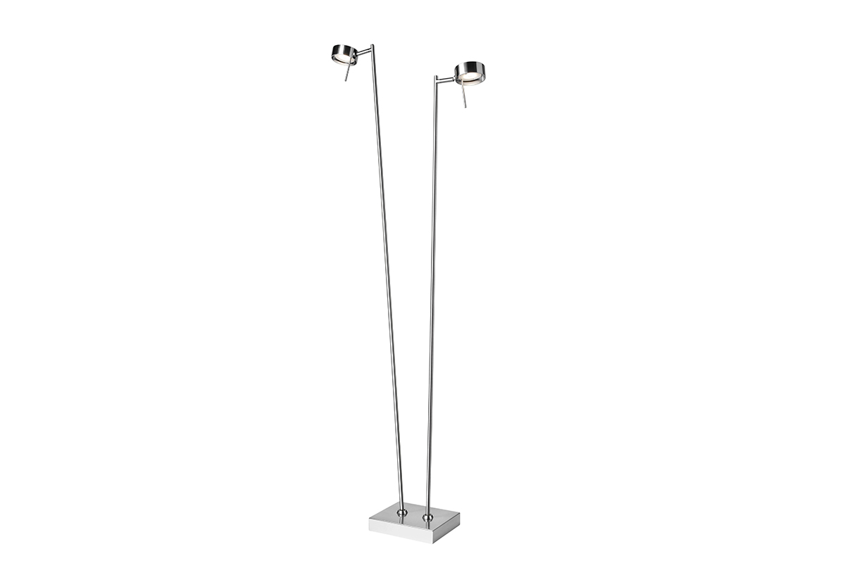 Die BLING Stehleuchte von Sompex erhalten Sie wahlweise mit mattiertem chrom oder schwarz beschichtetem Metall. Der Steg der Leuchte ist neigbar und der Kopf der Leuchte drehbar. Die fest verbauten LEDs können über den Touch-Sensor der Leuchte stufenlos gedimmt werden. Höhe 128 cm