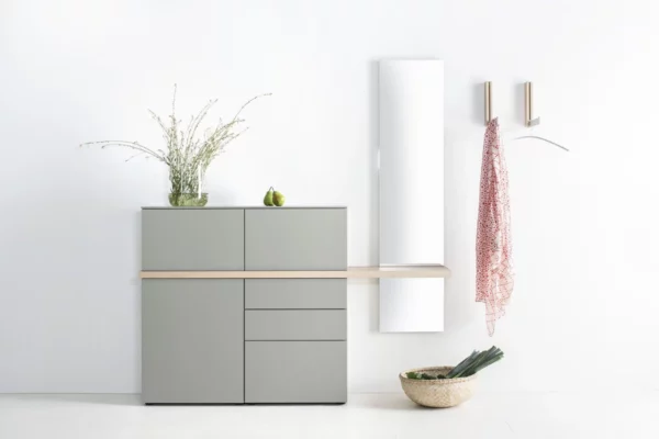 Erhältlich in verschiedenen Wunschfarben und -maßen, passt sich Tando perfekt Ihren Bedürfnissen an. Die horizontal betonten Linien der Kommoden und Schuhschränke mit markanten Griffleisten lassen Räume optisch größer wirken. Tando bietet zahlreiche Stauraumlösungen: flache und große Schuhschränke, Kleiderschränke, Garderobenstangen, Hakenleisten, beleuchtete Spiegel und mehr. Für eine besonders elegante Optik sind alle Fronten auch grifflos mit Push-to-Open-Technik verfügbar. Entdecken Sie die Garderobe Tando von Sudbrock in unserem Dielenstudio.