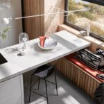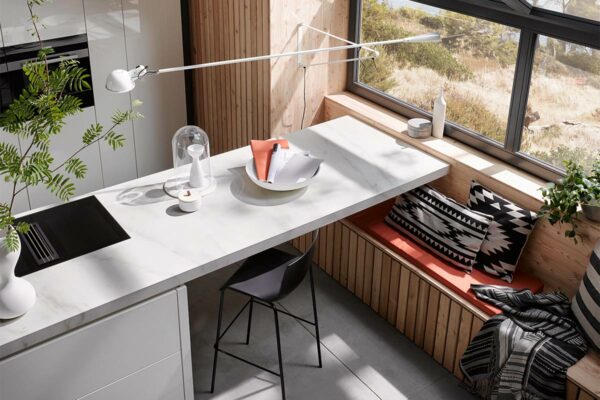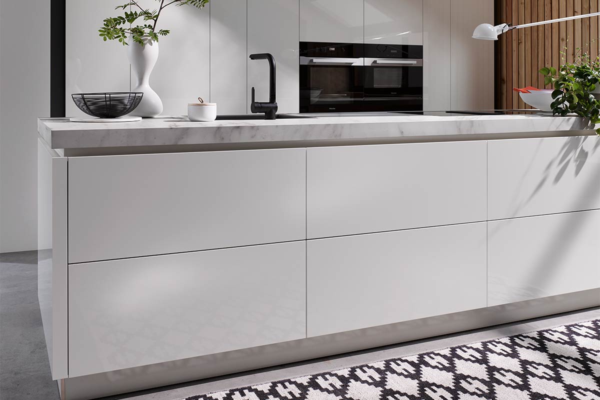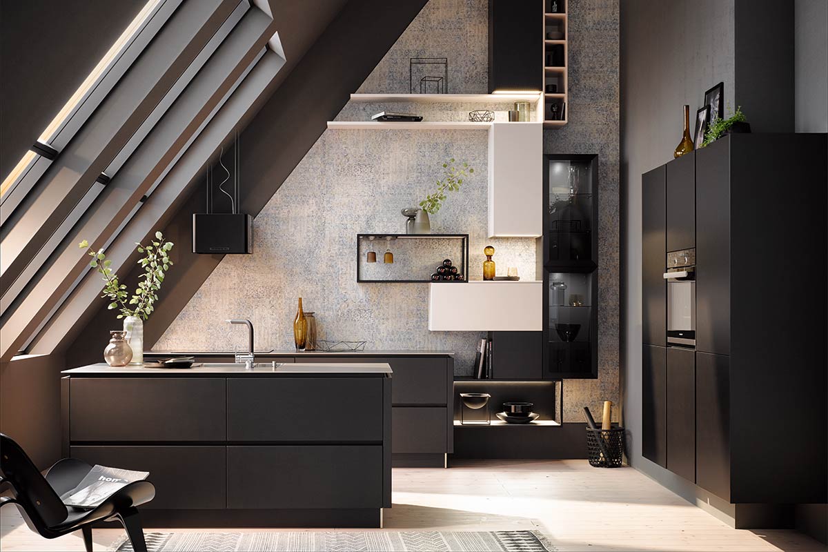 Royale Schönheit für Ihr ZuhauseImposant, prachtvoll und beeindruckend dominiert die Küche AV2035 von Häcker den Raum. Die Oberflächen der ebenmäßigen, matten Fronten in Graphit sind ein idealer Partner im Zusammenspiel mit der goldenen Küchenrückwand hinter Spüle und Ceranfeld. Wahrhaft königlich – das goldene Sideboard schafft eine besondere Verbindung zwischen Küchen- und Wohnmöbeln.