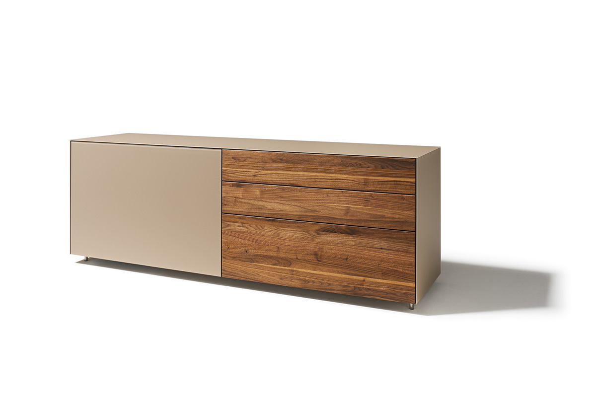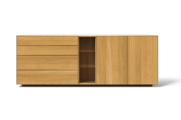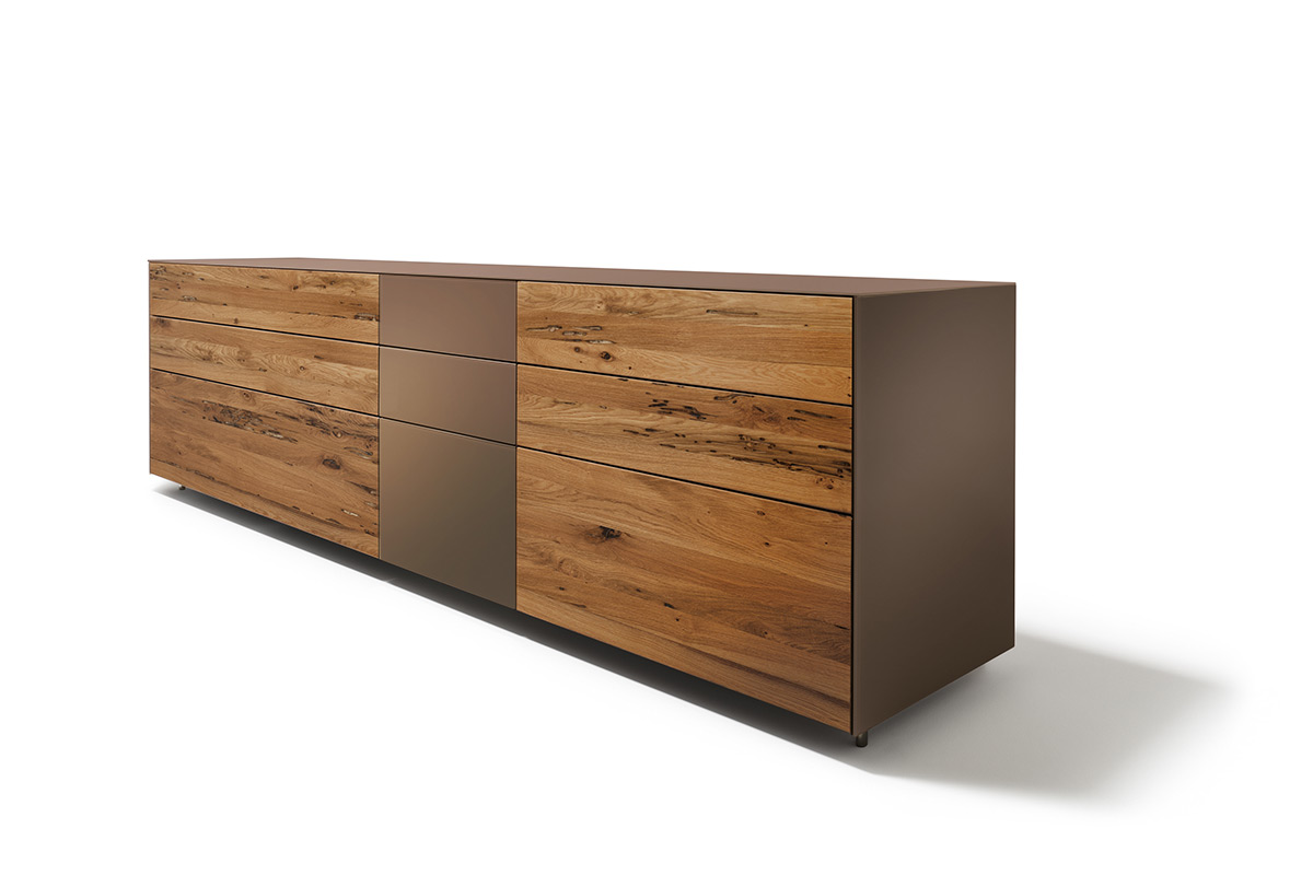 Stilvolle BegleiterZartes Farbglas ummantelt die Fronten der Beimöbel CUBUS PURE und betont die hochwertigen Naturholzoberflächen umso mehr. Die feine Glaskante verleiht den Möbeln eine filigrane Anmutung und der rückspringende Sockel sorgt für eine leichte, schwebende Optik. Offene Gestaltungselemente bieten zusätzliche Planungsmöglichkeiten und die ideale Bühne für die gekonnte Inszenierung großer und kleiner Schätze des Alltags. Besonders intensiv zeigt sich der spannende Kontrast zwischen den homogenen Glasflächen und dem lebendigen Naturholz mit unserer faszinierenden Frontvariante Eiche Venedig. Dieses einzigartige, von Hand sortierte Holzbild entstammt venezianischen Eichenstämmen und ist von den Spuren der Gezeiten und vom Besatz von Muscheln geprägt.