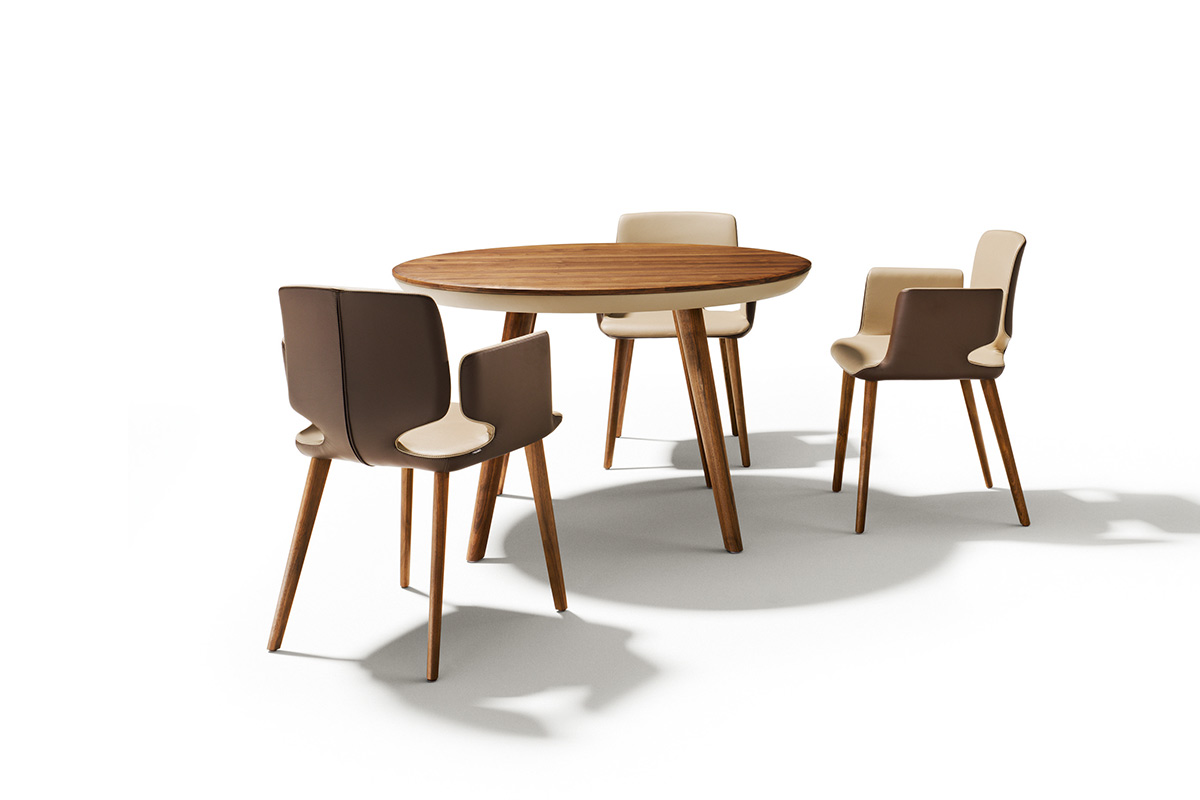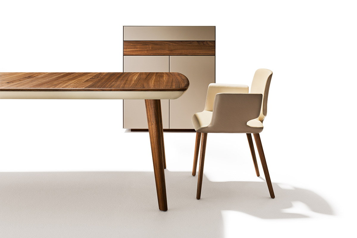 In nur 4 Sekunden ausziehbarMit dem revolutionären, intuitiv bedienbaren Nonstop-Auszug lässt sich der Tisch FLAYE mühelos in Sekundenschnelle um 100 cm verlängern – mit nur einer Bewegung. So schaffen Sie im Handumdrehen vier zusätzliche Sitzplätze. Das organische Design des Tisches FLAYE mit seinen präzise und sanft gerundeten Kanten der Tischplatte verwöhnt mit echten „Handschmeichlerdetails“ und sorgt für eine einzigartige Haptik. Die Zarge des Tisches kann sowohl in Leder als auch in Naturholz ausgeführt werden. Durch die raffinierte Gestaltung verschmelzen die Rundungen optisch zu einem Ganzen.