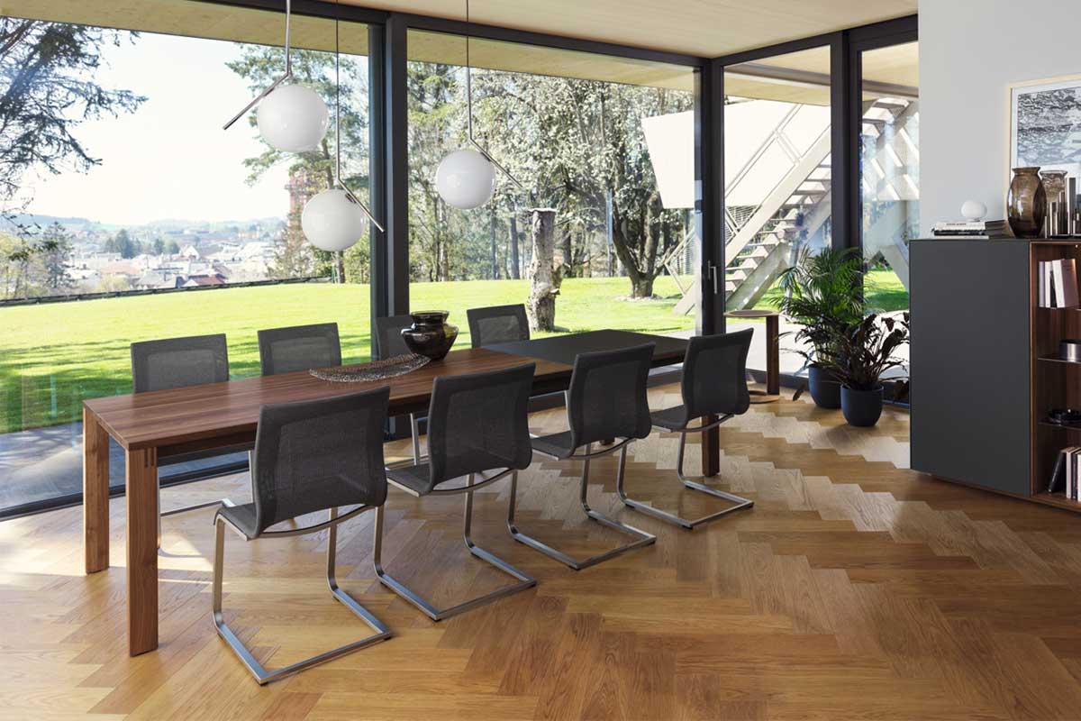 Ein Tisch mit Pioniergeist2005 konnte der Tisch MAGNUM den ersten, großen Designpreis gewinnen: den Red Dot Design Award. Und noch immer gehört dieser Tisch zu unseren absoluten Bestsellern. Das liegt zum einem an seiner zeitlos gültigen Formensprache und zum anderen an seiner durchdachten, einhändig bedienbaren Auszugstechnik, die damals wie heute Maßstäbe setzt. Durch die integrierten Einlegeplatten kann der magnum Tisch im Handumdrehen um 50, 2 x 50 oder 100 cm verlängert werden. Die patentierte 2soft-Ausschwenktechnik sorgt dabei für eine in beide Richtungen gedämpfte Bewegung und so für absoluten Komfort in der Handhabung.