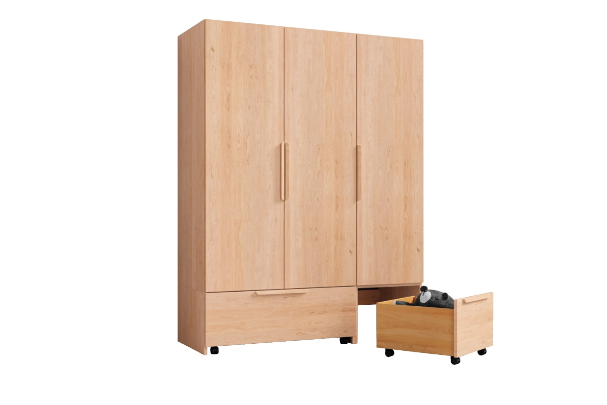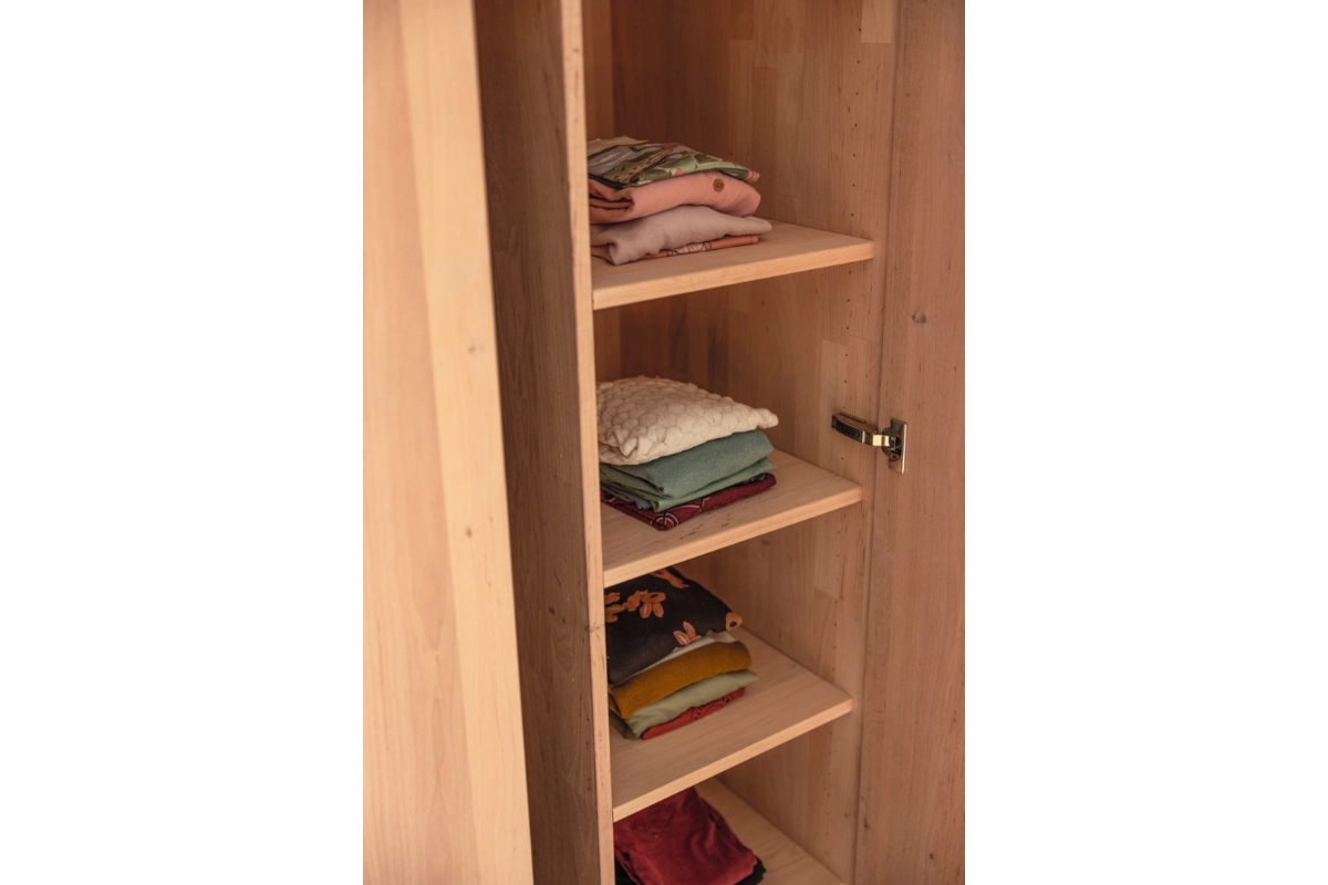 Mitwachsender StauraumDer Kinderkleiderschrank kids von TEAM 7 ist die ideale Lösung für wachsenden Stauraumbedarf im Kinderzimmer. Dank seines durchdachten Designs unterstützt er Kinder dabei, selbstständig Ordnung zu halten. Der Kleiderschrank lässt sich flexibel erweitern und perfekt mit Regalen kombinieren, basierend auf einem gemeinsamen Korpussystem. Das macht die Planung kinderleicht und sorgt für ein aufgeräumtes Kinderzimmer. Mit Drehtüren und Schubladen in niedriger Höhe haben Kinder einfachen Zugriff auf Kleidung und Spielsachen. Eine mobile Rolllade schafft zusätzlichen Stauraum und kann bequem verstaut werden. Die liebevoll gestalteten Holzgriffe sind perfekt für kleine Kinderhände und machen das Öffnen und Schließen zum Kinderspiel.