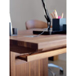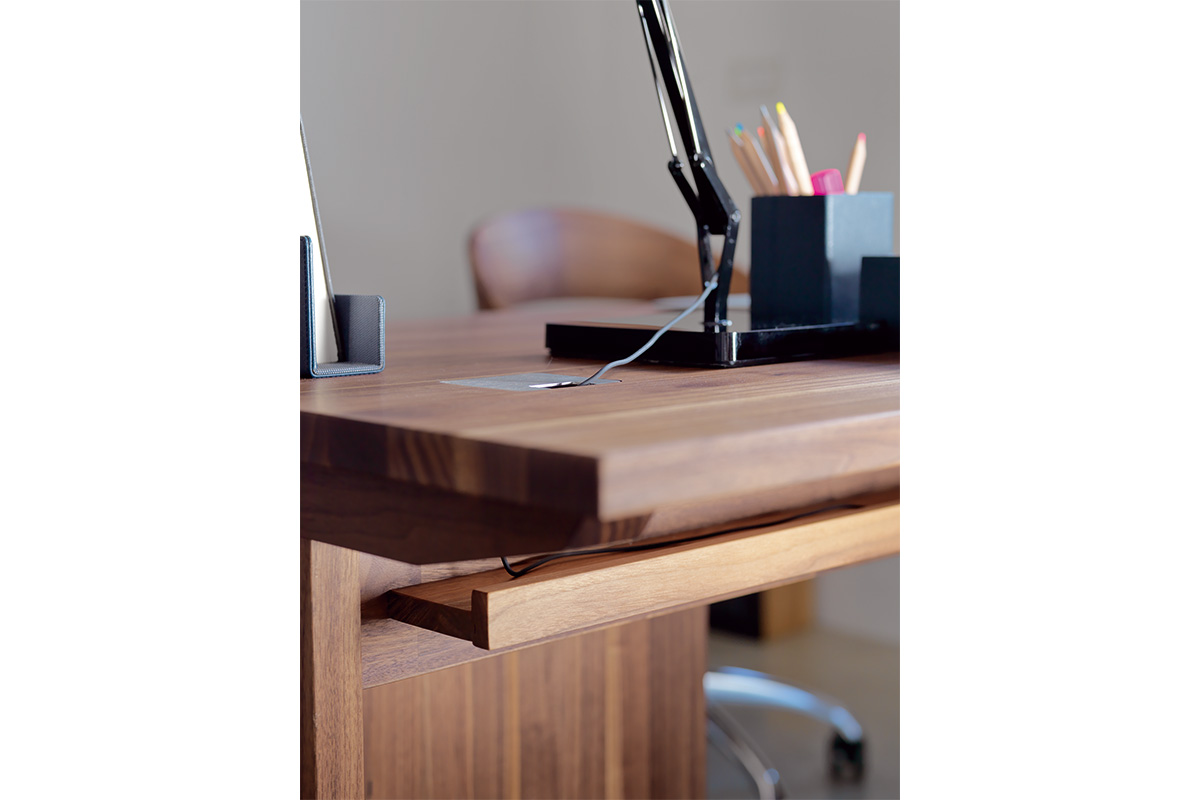 So schön ist Arbeiten zuhause.Der Team 7 Schreibtisch Atelier versüßt Ihnen Ihre Home Office-Zeiten mit seiner herrlichen Formensprache und der Schönheit des lebendigen Naturholzes. Dabei müssen Sie nicht im stillen Kämmerchen sitzen, denn sein ausgezeichnetes Design macht ihn auch zu einem Hingucker in jedem Wohnzimmer. Mit praktischen Details macht er Ihnen die Arbeit so angenehm wie möglich: In der Höhe verstellbar, passt sich der atelier Schreibtisch Ihrer Größe an. Notwendige Kabel verschwinden komfortabel im Kabelauslass der Tischplatte und im integrierten Kabelkanal.