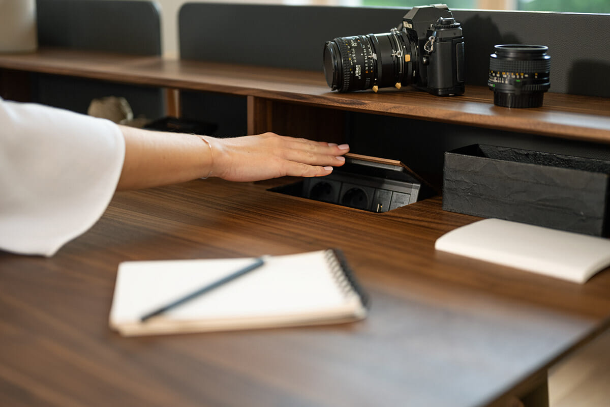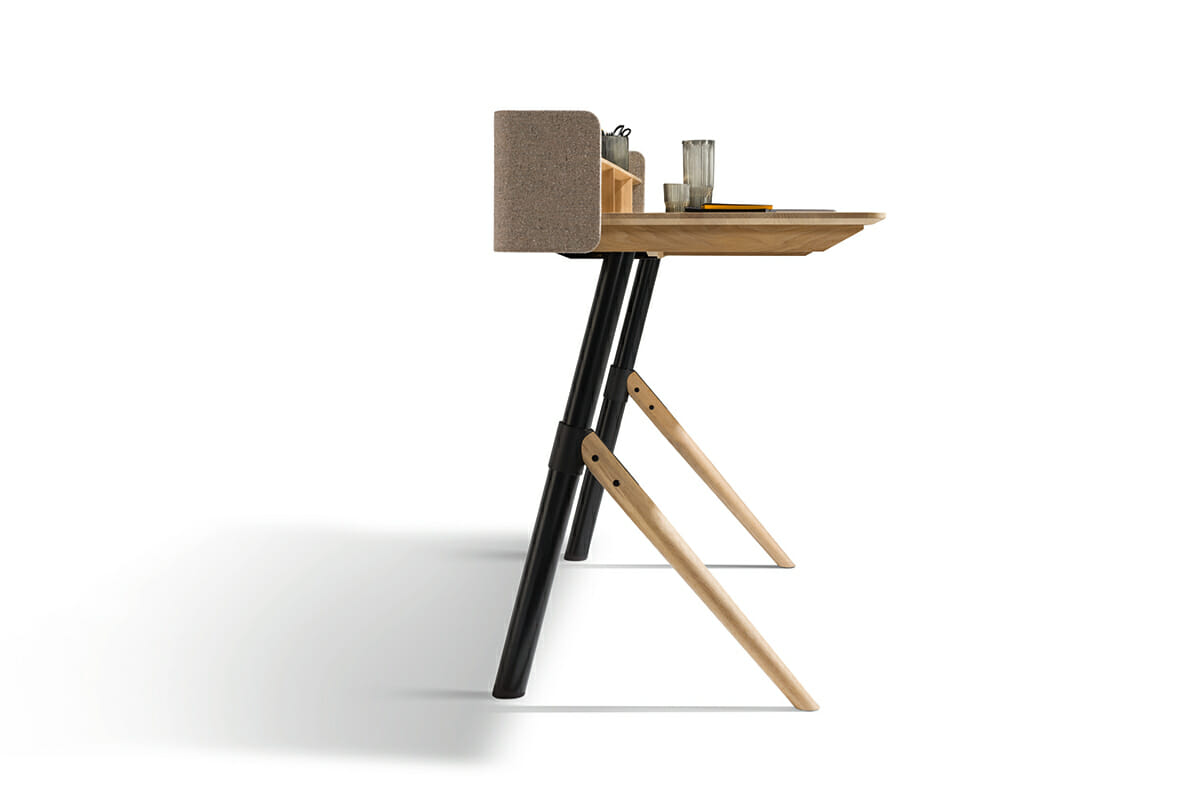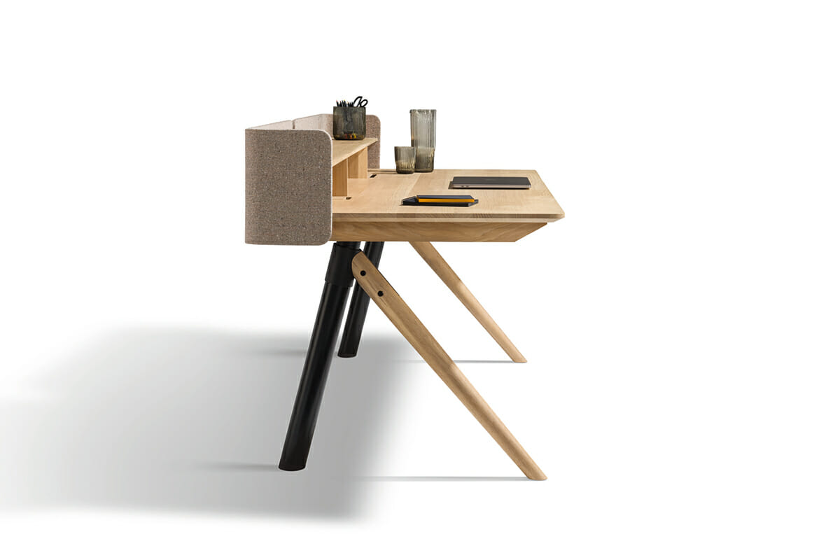 Home-Office mit Wohngefühl.Mit pisa geht TEAM 7 einen völlig neuen Weg im Home-Office Bereich. Der aus reinem Naturholz gefertigte Schreibtisch vereint das moderne Home-Office mit natürlichem Wohngefühl. Die schräg eingebaute Hubsäule ist Designelement und innovative Technik zugleich. Sie ermöglicht eine stufenlose elektrische Höhenverstellung von 67 – 115 cm. Millimetergenau an Ihre Bedürfnisse angepasst, kann der pisa Schreibtisch im Sitzen oder im Stehen genutzt werden. Bilder und Pinnwände an der Wand sind kein Hindernis, denn die Tischplatte bewegt sich beim Hochfahren automatisch leicht nach vorne. pisa lässt sich durch seine schlanke und leichte Anmutung wunderbar mit anderen TEAM 7 Möbelprogrammen kombinieren und macht so Ihr Home-Office zum wohnofficeT7.
