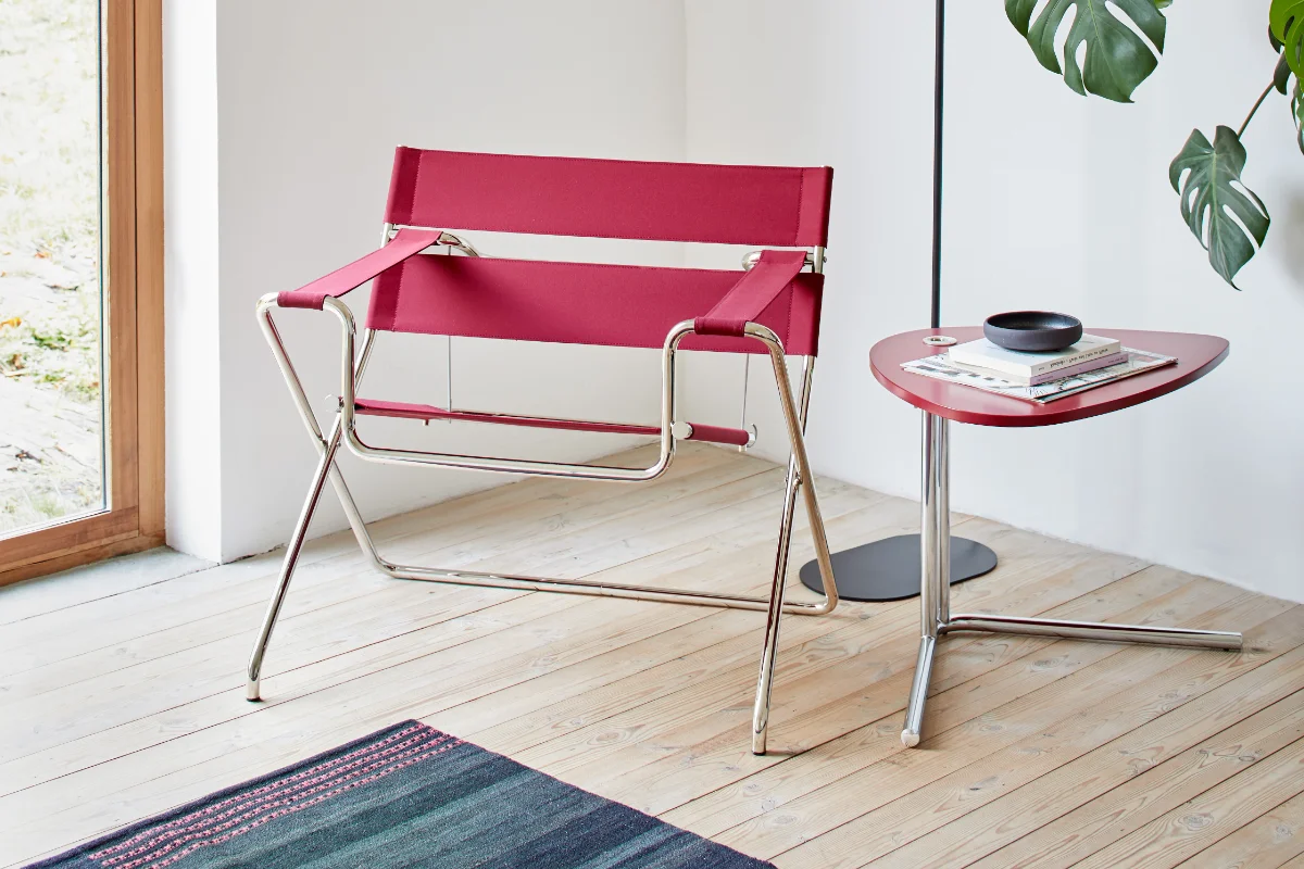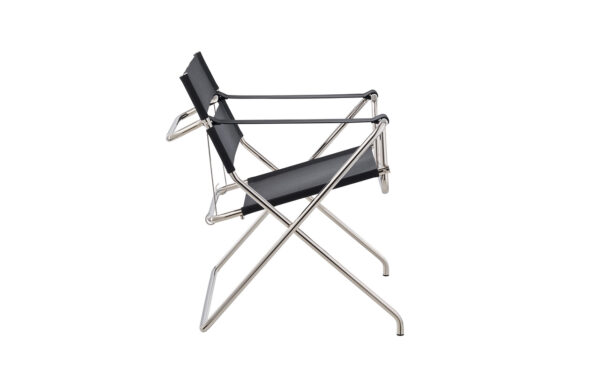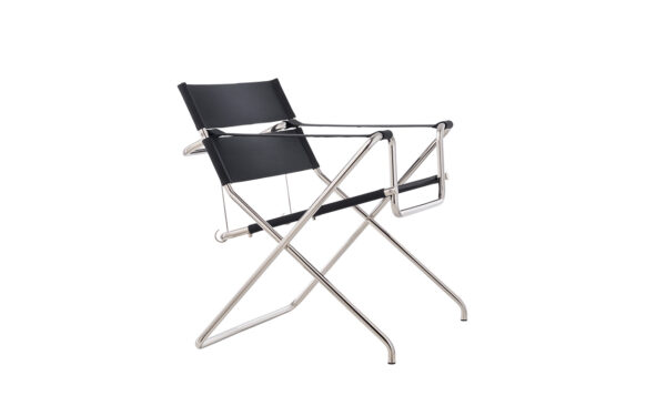 Der Klassiker von Marcel BreuerSinn für Schönheit, gepaart mit Funktionalität. Diese Verbindung zeichnet ganz besonders den Faltsessel D4 (früher B4) aus. Der zusammenklappbare Stahlrohr-Klubsessel mit Gurtbespannung entstand 1926/27 und wurde im ersten Breuer-Stahlrohrkatalog als „besonders geeignet“ für Schiffe und Sportplätze beworben sowie für Terrassen, Sommerhäuser, Gärten und Gartencafés. Dieses sportliche-luftige Ambiente hat sich in die Konstruktion eingeschrieben, leicht und federnd wirkt der D4 noch heute.