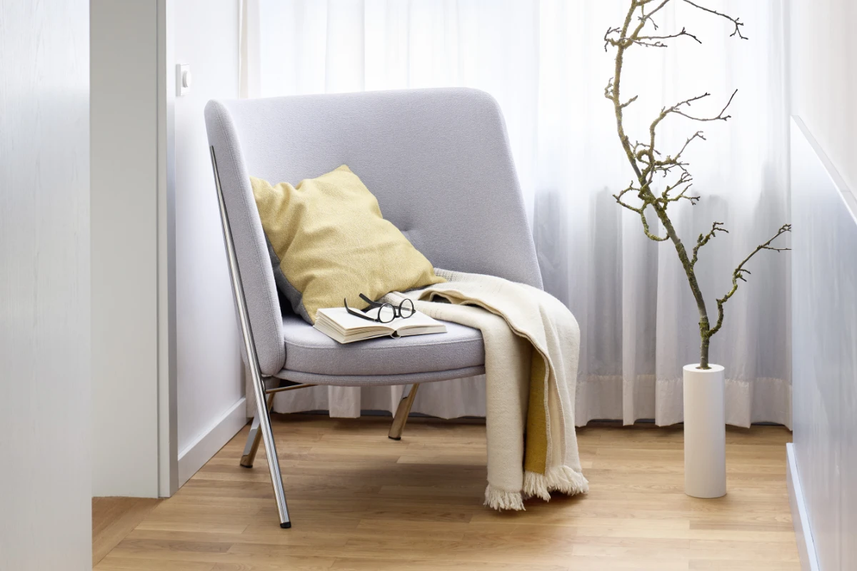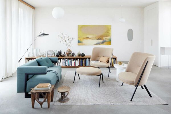 Der OptimistD70 – der neue Tecta-Sessel erinnert an eine kleine Koje und stellt die Zeichen auf Optimismus: mit frischer Brise die Segel setzen – ob für Lese- oder Kaminstunden. Bläst ein starker Wind von Süd, könne man meinen, der D70 dreht sich in die Böe und startet seinen Törn durch die Wogen. Ein kleiner Segler mit hoher Rückenlehne, eine Koje, die vor dem Rest der Welt abschirmt oder die reduzierte Variante des traditionellen Kaminsessels bildet – das neue Möbel von Marco Dessí setzt viele Bilder frei, die weit übers Sitzen hinausführen. Mit seiner ovalen Sitzfläche erlaubt er, die Beine anzuziehen, den Paravent auszurichten, einen kleinen Rückzugsort mit passender Ottomane im Raum zu bilden. Eben: Einfach mal sitzen zu bleiben.