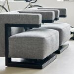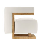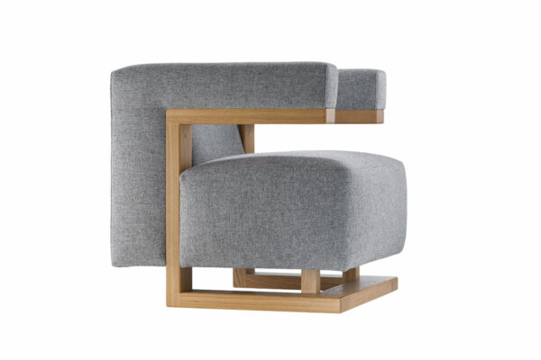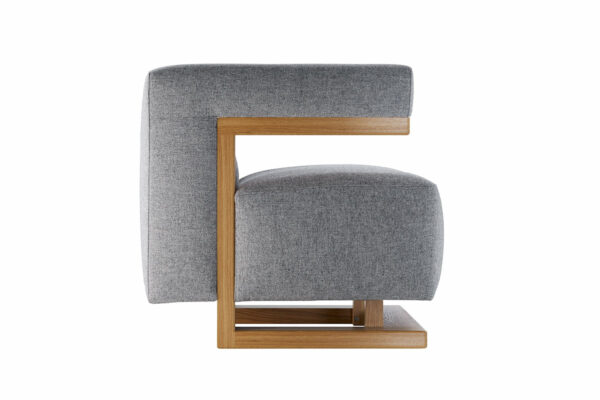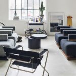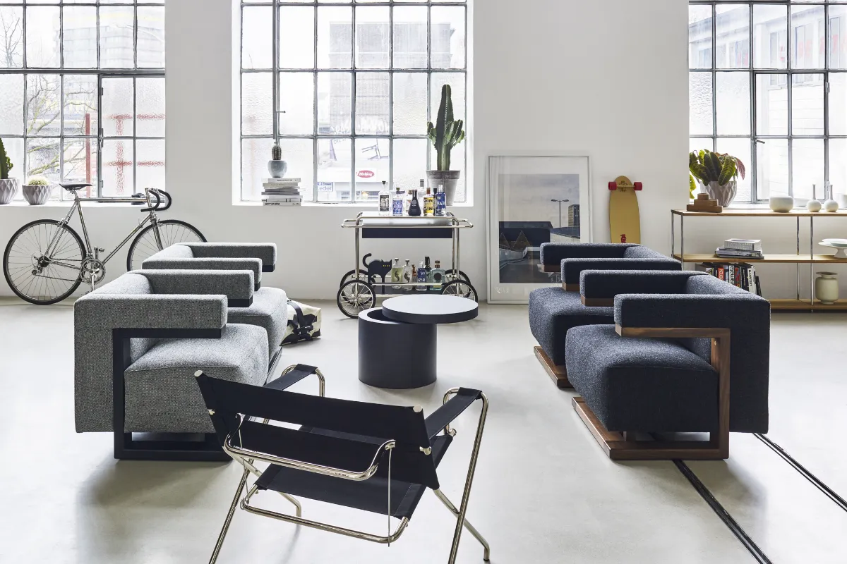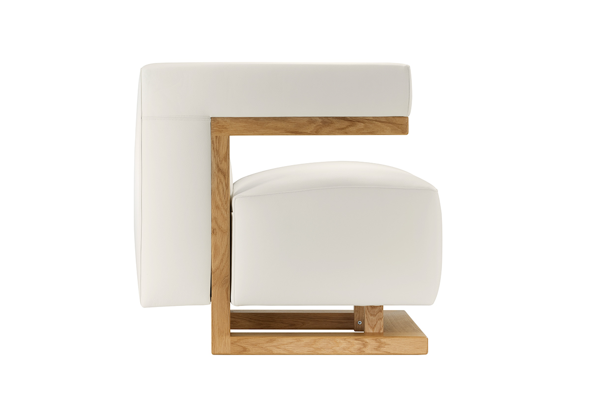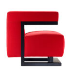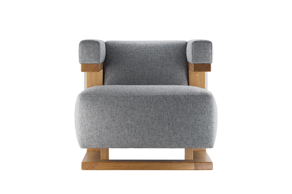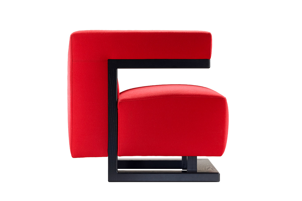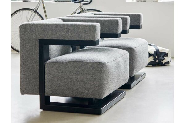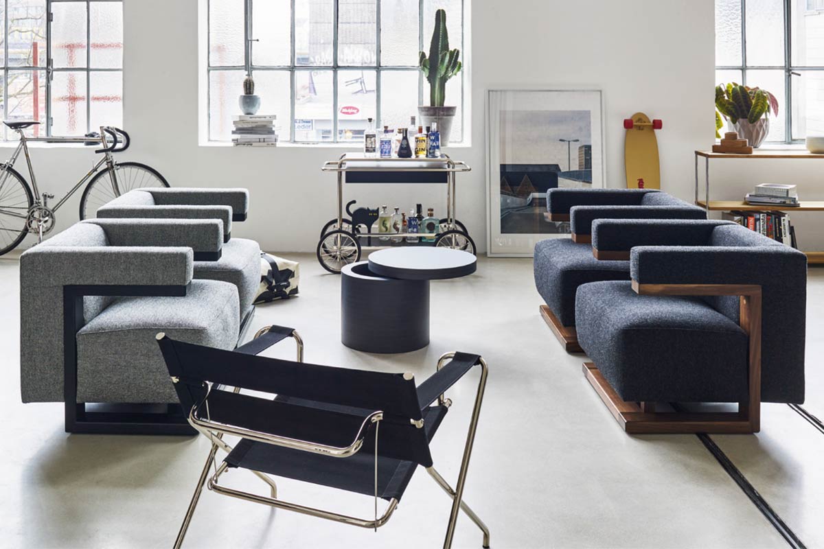 Der Gropius-Sessel1922/23, im Bauhaus hat sich nach expressionistischen Anfängen eine vom »De Stijl« beeinflusste formal-geometrische Gestaltung etabliert, gestaltet Gropius sein streng kubisches Direktorenzimmer mit eigenen Entwürfen und solchen anderer Bauhäusler. Bücher und Zeitschriften finden in einer mäandernden Ablage Platz, Schreibtisch und Arbeitsstuhl ordnen den Raum geradlinig, eine vierflammige Soffittenleuchte akzentuiert die rektanguläre Umgebung. Ergänzt wird das Ensemble durch den Gropius-Entwurf einer kubischen Sessel- mit Sofagruppe, die voluminöse Polster mit einer neuartigen Tragekonstruktion kombiniert. Diese Durchdringung von Volumen und Linearität erinnert an die gleichzeitigen Architekturprojekte von Gropius, besonders den Wohnhaus-»Baukasten im Großen«. Doch ist die Tragkonstruktion vor allem aus einem anderen Grund von Bedeutung.Denn die Armlehnen kragen frei aus, und auch der Rücken erreicht nicht den Boden. Erst recht ohne Polster erweist sich diese Kragarmkonstruktion als Vorläufer der hinterbeinlosen Stühle wie auch, um 90° gedreht, als Vorwegnahme des Kufenhockerprinzips von Marcel Breuer 1925.