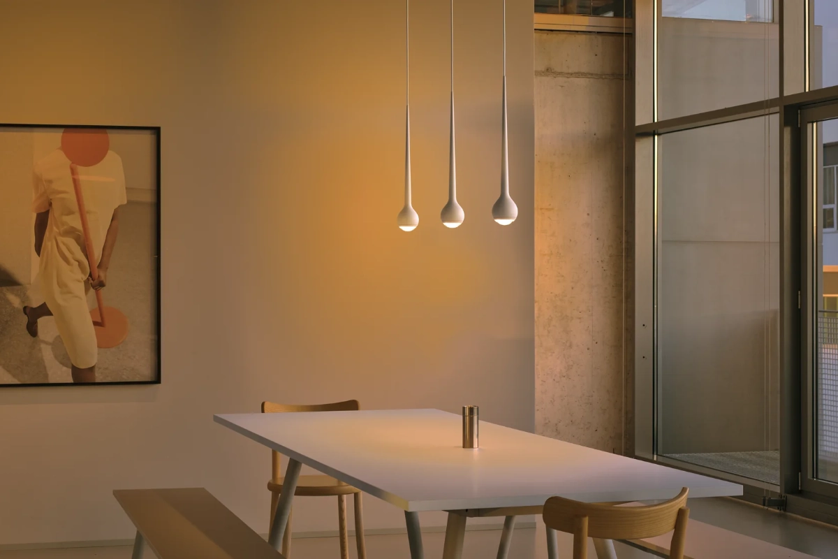 Prachtvolle BrillianzFalling Sun Trace von GRAU ist die elegante Tischbeleuchtung mit preisgekröntem Design und feinsten Finishes – made in Germany. Die optische Linse lenkt das Licht blendfrei und lichtstark 360° auf den Tisch, während integrierte Strahler Wände, Bilder oder Objekte im Raum beleuchten. Sunset Dimming unterstützt den Bio-Rhythmus und fördert das Wohlbefinden. Dimmen und konfigurieren Sie das Licht bequem per GRAU App und schaffen Sie individuelle Lichtszenen für jede Stimmung.