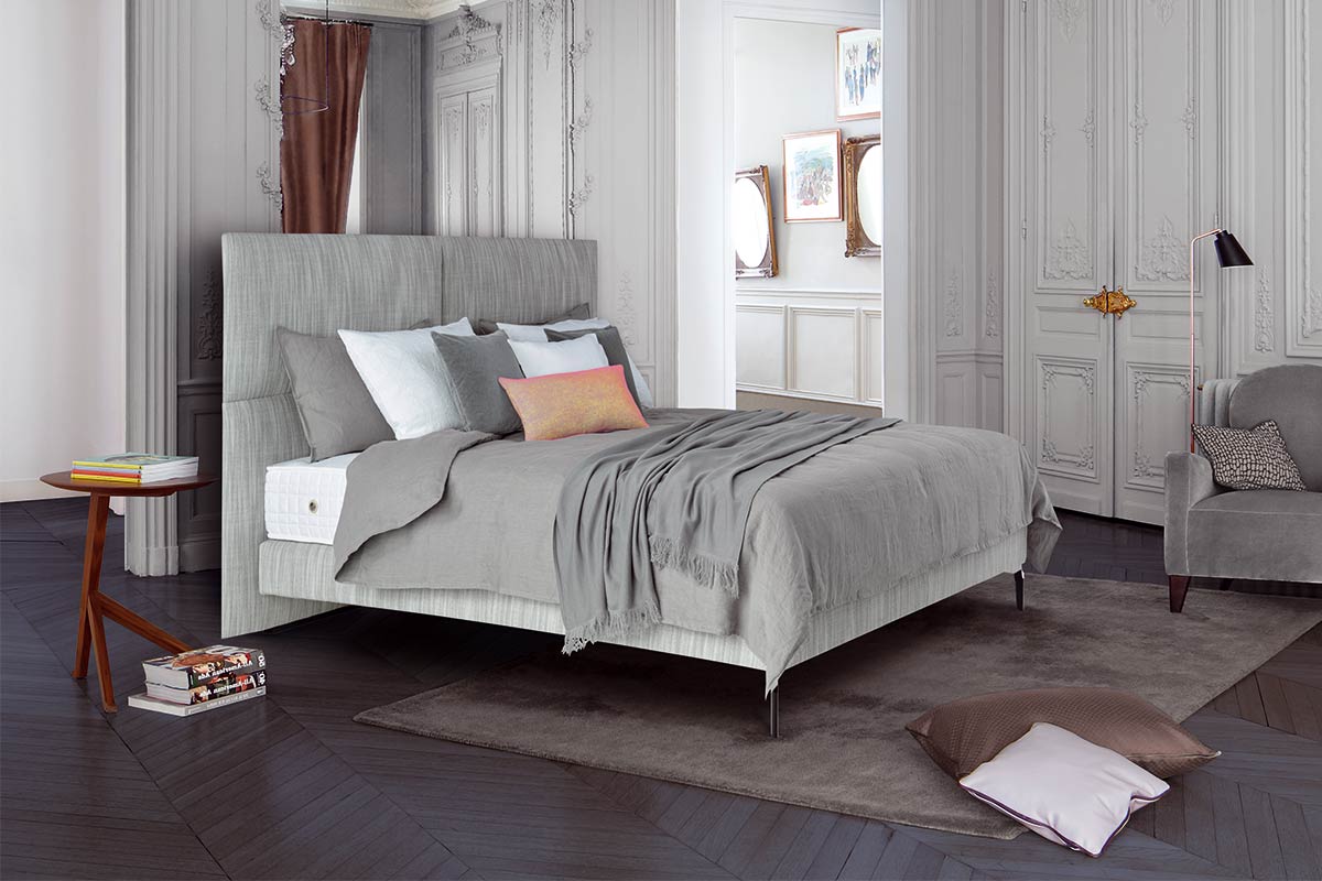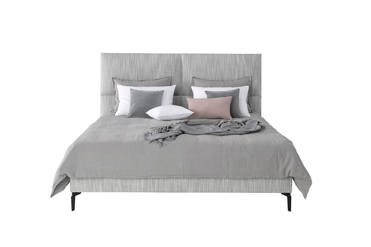 Haute-Couture SchlafkomfortDas Design von Portofino verbindet zugleich weiche Formen, die an Kissen erinnern und eine strengere geradlinige Architektur. Die bewusste Teilung verleiht dem geraden Kopfteil einen modernen Charakter. Die geringe Tiefe gibt dem Kopfteil seine Leichtigkeit, nimmt ihm aber gleichzeitig keinen Komfort. Die Kissen Optik lädt zum dauerhaften Verweilen ein.