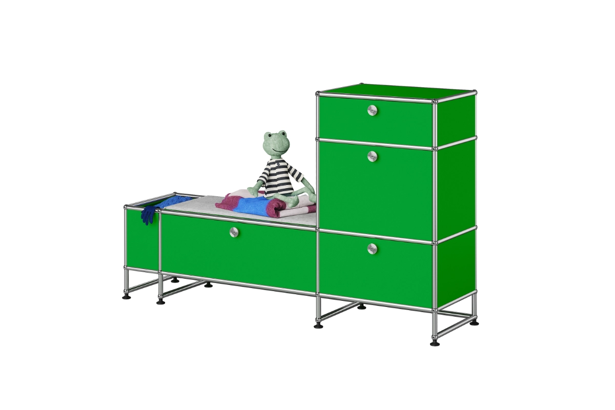 Bunte, modulare Möbel für ein kreatives Kinderzimmer.Mit den USM Haller Kids Möbeln bringen Sie lebendige Farben und höchste Funktionalität in jedes Kinderzimmer. Das modulare System ist in leuchtenden Farbtönen wie intensivem Rot, frischem Grün, tiefem Enzianblau und sonnigem Gelb erhältlich und lässt sich individuell an die wachsenden Bedürfnisse Ihrer Kinder anpassen. Robuste Spielzeugregale, clevere Stauraumlösungen und kindgerechte Metallmöbel sorgen dafür, dass alle Lieblingsstücke – von Spielzeug über Bücher bis hin zu Kleidung – stets sicher und ordentlich verstaut sind. Dank praktischer Fächer, ausziehbarer Schubladen und abschließbarer Module bleibt das Kinderzimmer immer gut organisiert. Gestalten Sie mit USM Haller Kids eine inspirierende, spielerische und stilvolle Umgebung, die sowohl Funktionalität als auch Design überzeugt.