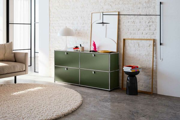 Neue Standardfarbe OlivgrünUSM erweitert sein Farbsortiment um die vielseitige Sonderfarbe Olivgrün, die aufgrund durchweg positiver Kundenreaktionen und hoher Nachfrage nun dauerhaft verfügbar ist. Olivgrün besticht durch seine perfekte Balance zwischen warmen und kühlen Tönen, wodurch es sich nahtlos in jeden Designstil einfügt und mit fast jeder Farbe harmoniert. Unter Sonnenlicht wirkt es gemütlich und einladend, während es bei kühlerem Licht seine elegante Gelassenheit behält. Diese Anpassungsfähigkeit macht Olivgrün zur idealen Wahl in der Innenarchitektur, da es sich spielerisch in verschiedene Stimmungen und räumliche Kontexte einfügen lässt. Mit seinen beruhigenden und erdenden Eigenschaften, gepaart mit den gelben Untertönen, ergänzt Olivgrün natürliche Materialien wie Holz und Stein und verleiht dem Gesamtdesign Tiefe und Struktur.