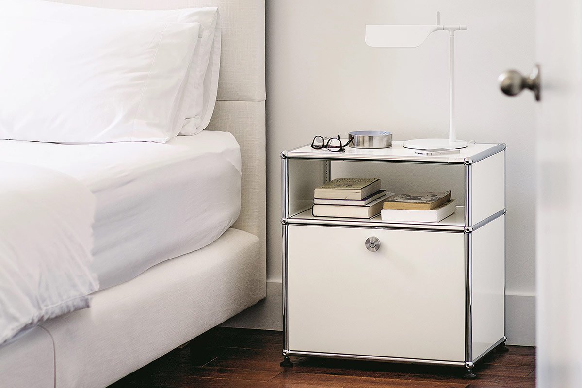 Wachstum in allen RichtungenDie Anpassbarkeit an Ihre Bedürfnisse verspricht das USM Möbelbausystem Haller: Möbelstücke, die nur für Sie und Ihre Wünsche gebaut werden. Wählen Sie die Höhe für Ihren Nachttisch aus, die am besten zu Ihnen und Ihren Möbeln passt, sowie die Abmessungen, die zu den jeweiligen Möbelstücken und Ihrem Raum passt: für Radios, Uhren, Bücher und Lampen, die Sie im Nachttisch oder darauf platzieren können. Mit einer Vielzahl von Optionen für Schubladen und Regale, kombiniert mit vielen Farben, aus denen Sie auswählen können, passen Stil und Funktion der Möbel perfekt zusammen.
