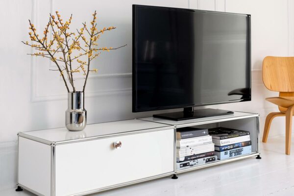 TV-Möbel mit Klapptür, B 150 x H 29 x T 35 cm, Farbe reinweiß. In vielen anderen Farben lieferbar. inkl. kostenloser Lieferung im Umkreis von 50 km| Hersteller | |