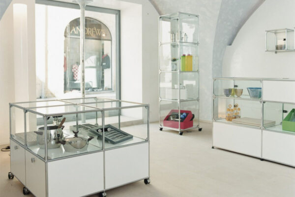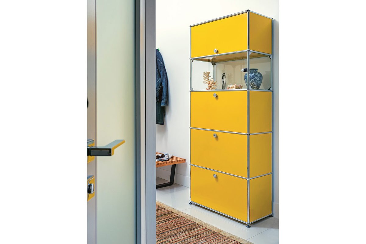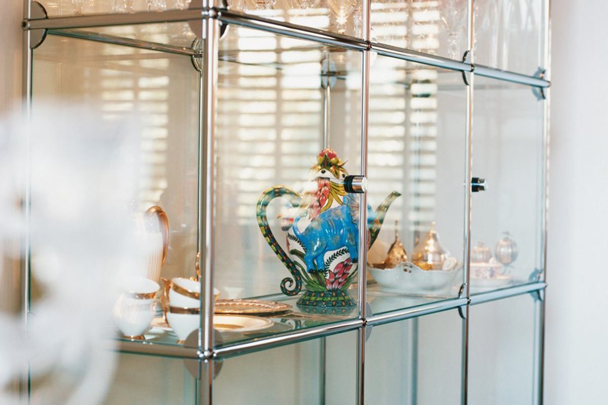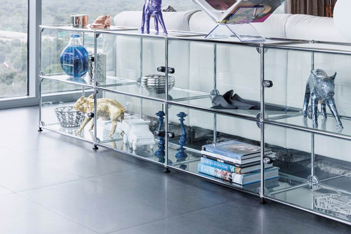 Wachstum in allen RichtungenPräsentieren Sie Ihre Bücher und Schätze in einer stilvollen Umgebung. Verwenden Sie das modulare USM Möbelbausystem, um Bücherregale, Vitrinen und Regalwände zu entwerfen, die Ihr Zuhause verwandeln und die Schönheit der Dinge, die Ihnen am Herzen liegen, gekonnt in Szene setzen. Vitrinen aus Glas und Chrom der modularen Regale lassen Ihre Skulpturen und Lieblingsstücke in einem neuen Licht erstrahlen. Weiße Möbel jeder Größe bilden einen neutralen, aber eleganten Hintergrund für Bücher und andere Einrichtung und passen perfekt zu jedem Farbschema. Rote, gelbe und andere leuchtende Farben können als Basis für außergewöhnliche Wohnwände dienen.