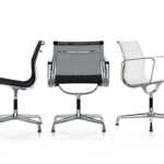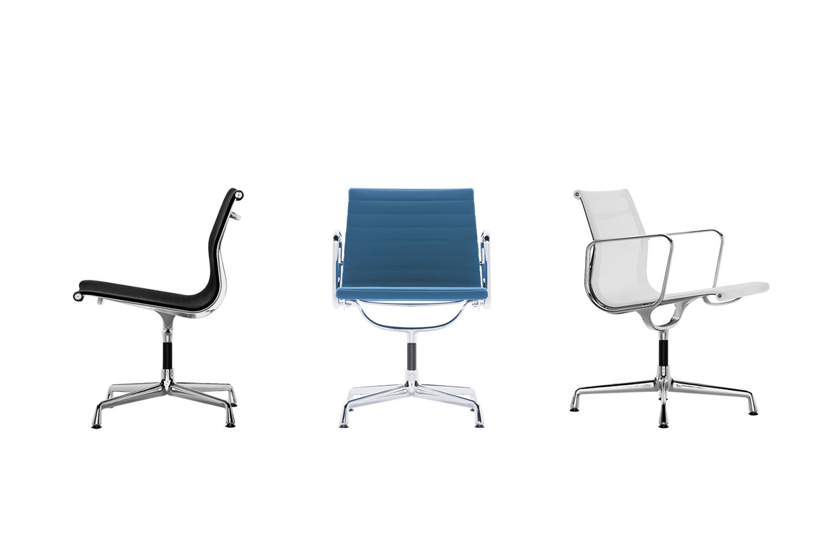 Einer der bedeutendsten Möbel-Entwürfe des 20. Jahrhunderts.Die Aluminium Chairs EA 105-108 sind die Meetingstühle schlechthin. Sie finden sich in unzähligen gehobenen Büros, Konferenzbereichen und Sitzungszimmern auf der ganzen Welt. Dank ihrer grosszügigen Dimensionen und dem zwischen den beiden Holmen verspannten Leder, Stoff oder Netzgewebe bieten sie einen hohen Komfort. Mit der grossen Auswahl an Bezugsfarben lässt sich für jede Umgebung der passende Stuhl finden.