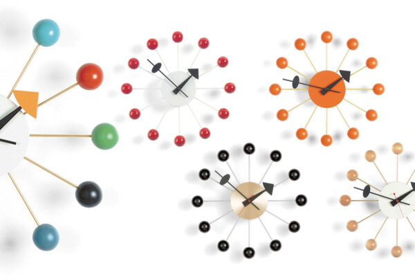 Dekorative WanduhrGeorge Nelson entwarf mit den Wall Clocks (1948-1960) eine vielfältige Palette von Uhrenmodellen, von denen einige zu Ikonen des Designs der 1950er-Jahre avanciert sind.