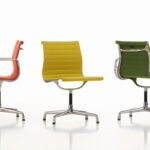 Der Aluminium Chait ist der ideale Dining Chair für Ihr EsszimmerDie Aluminium Chairs EA 101, EA 103 und EA 104 von Charles und Ray Eames eignen sich ideal für den Einsatz am Esstisch: Sie sind im Vergleich zu den anderen Aluminium Chairs etwas leichter, schmaler und höher. Dank der grossen Auswahl an gedeckten oder bunten Farben lässt sich für jede Esszimmerumgebung der passende Stuhl finden. Die drei Modelle unterscheiden sich darin, ob sie fix, drehbar oder mit Armlehnen ausgestattet sind.