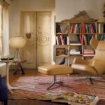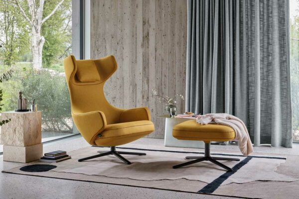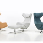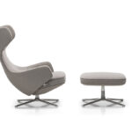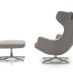 Verstellbarer Lounge-Sessel mit hoher Lehne.Im Innern des Ohrensessels Grand Repos ist eine stufenlos arretierbare Synchronmechanik versteckt, die den Nutzer in jeder Neigeposition stützt und damit höchsten Komfort ermöglicht. Das charakteristische Kopfteil lädt zum Anlehnen ein und vermittelt Geborgenheit. Die Ziernähte im Stoff- oder Lederbezug einiger Versionen verleihen Grand Repos einen fast handwerklichen Ausdruck.