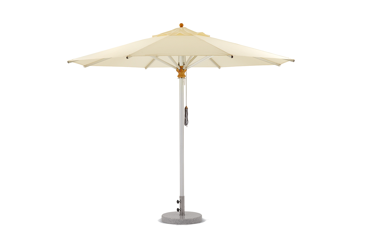 Die Aluschirme machen in jeder Umgebung eine gute FigurMast und Streben werden aus hochwertigem Aluminium hergestellt und hellgrau eloxiert, die Schirmnaben fertigt Weishäupl aus verleimten Harthölzern. Diese Kombination macht den Aluschirm unschlagbar stabil und witterungsbeständig. Lieferbar in folgenden Größen: Ø 270 cm, Ø 350 cm, Ø 400 cm oder 300 x 300 cm