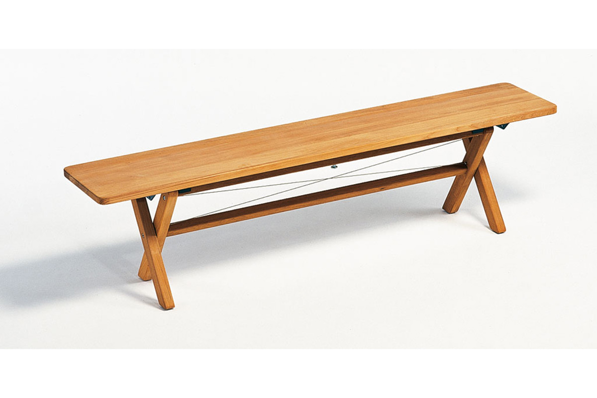 Unkomplizierte und platzsparende Gartenmöbel. Das ist Cross von Weishäupl aus massivem Teak. Die Bänke gibt es in zwei Längen. Durch abnehmbare Rückenlehnen und bequeme Polsterauflagen laden sie zum Sitzenbleiben ein. Passend dazu bietet Weishäupl verschieden lange Tische an. Alle Möbel erreichen mithilfe kreuzförmig angeordneter Edelstahl-Seilverspannungen eine hohe Längsstabilität.